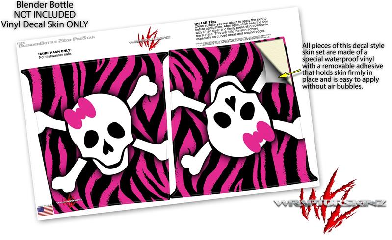 Decal Style Skin Wrap works with Blender Bottle 22oz ProStak Pink Zebra Skull (BOTTLE NOT INCLUDED)