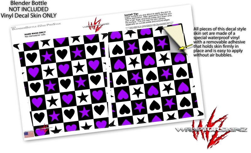 Decal Style Skin Wrap works with Blender Bottle 22oz ProStak Purple Hearts And Stars (BOTTLE NOT INCLUDED)