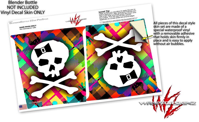 Decal Style Skin Wrap works with Blender Bottle 22oz ProStak Rainbow Plaid Skull (BOTTLE NOT INCLUDED)