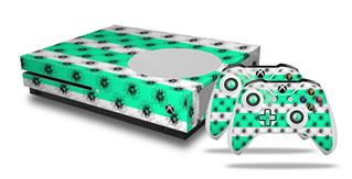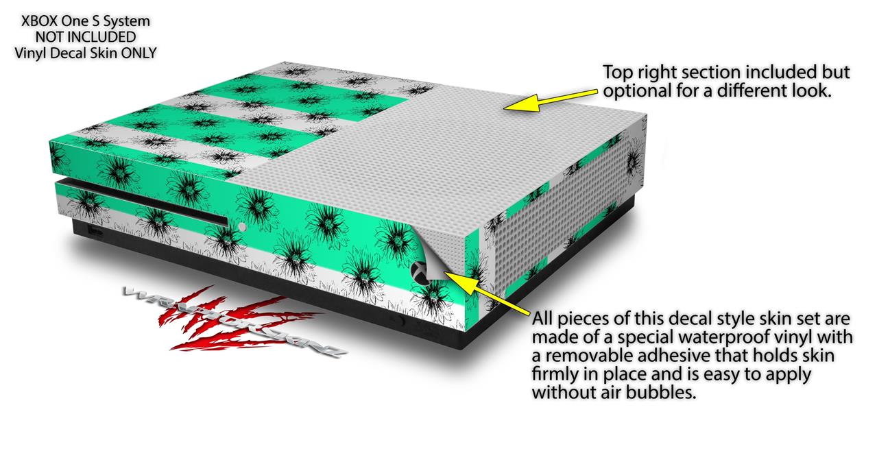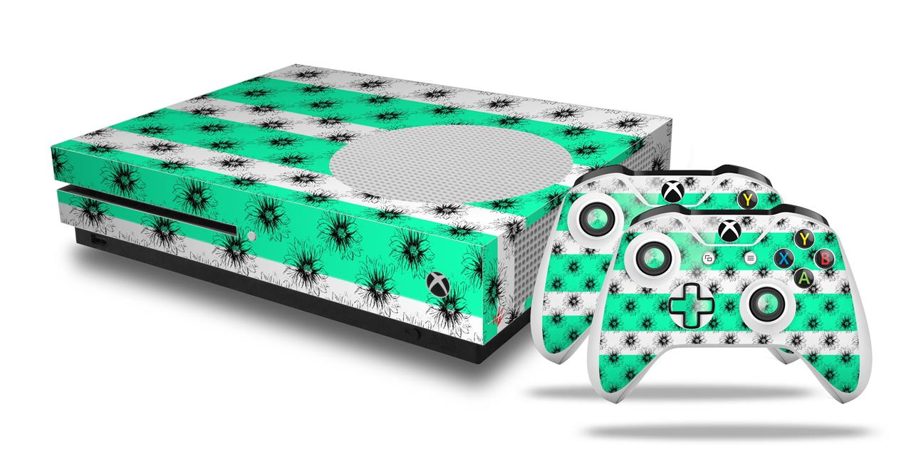 WraptorSkinz Decal Skin Wrap Set works with 2016 and newer XBOX One S Console and 2 Controllers Kearas Daisies Stripe SeaFoam