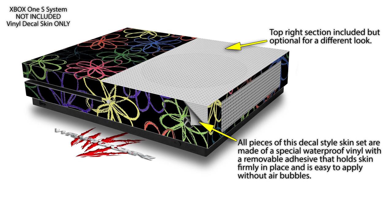 WraptorSkinz Decal Skin Wrap Set works with 2016 and newer XBOX One S Console and 2 Controllers Kearas Flowers on Black