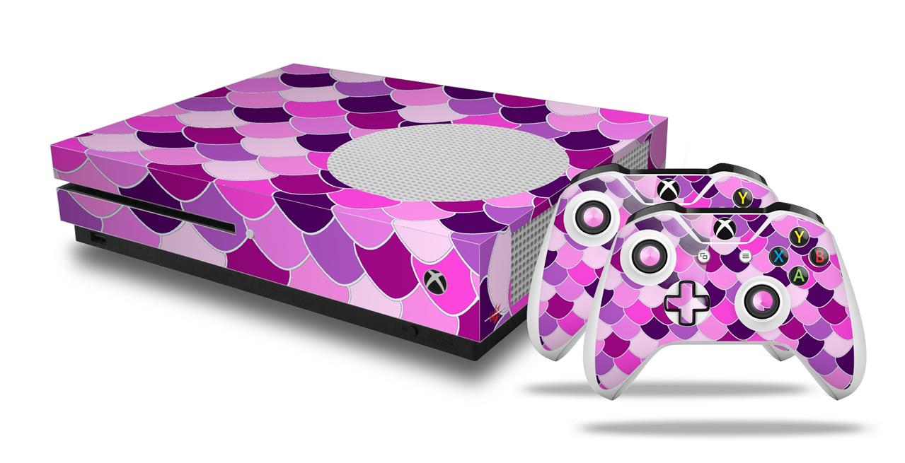 WraptorSkinz Decal Skin Wrap Set works with 2016 and newer XBOX One S Console and 2 Controllers Scales Pink Purple