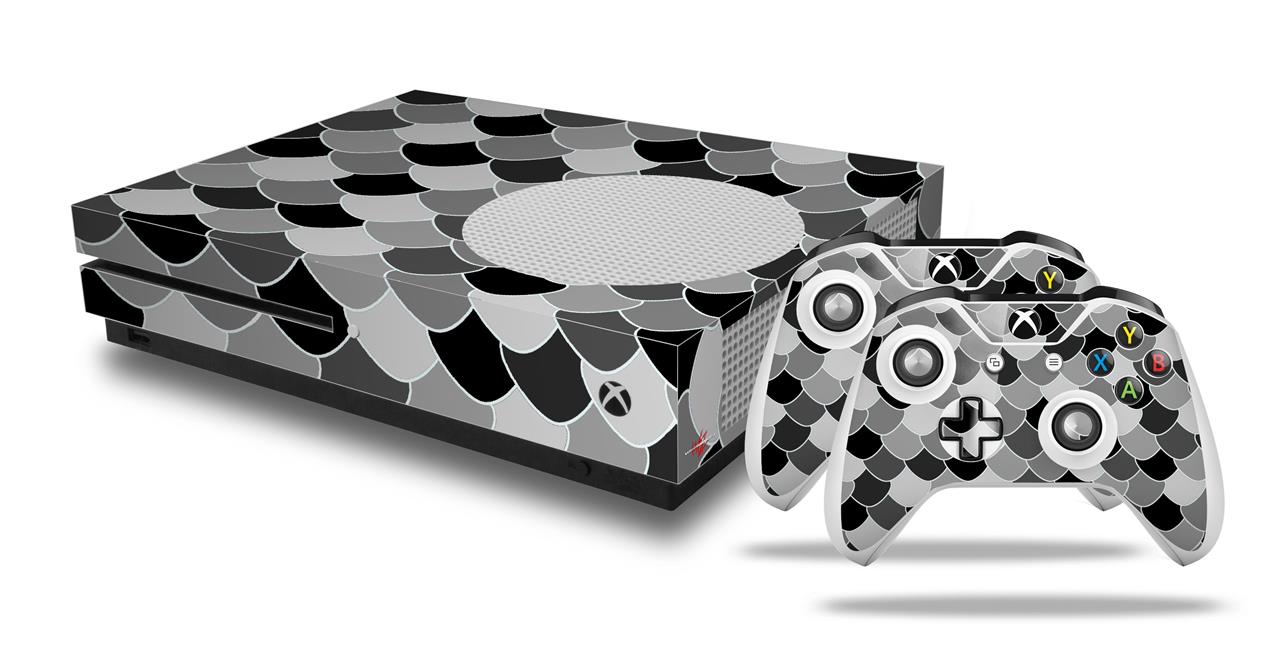 WraptorSkinz Decal Skin Wrap Set works with 2016 and newer XBOX One S Console and 2 Controllers Scales Black