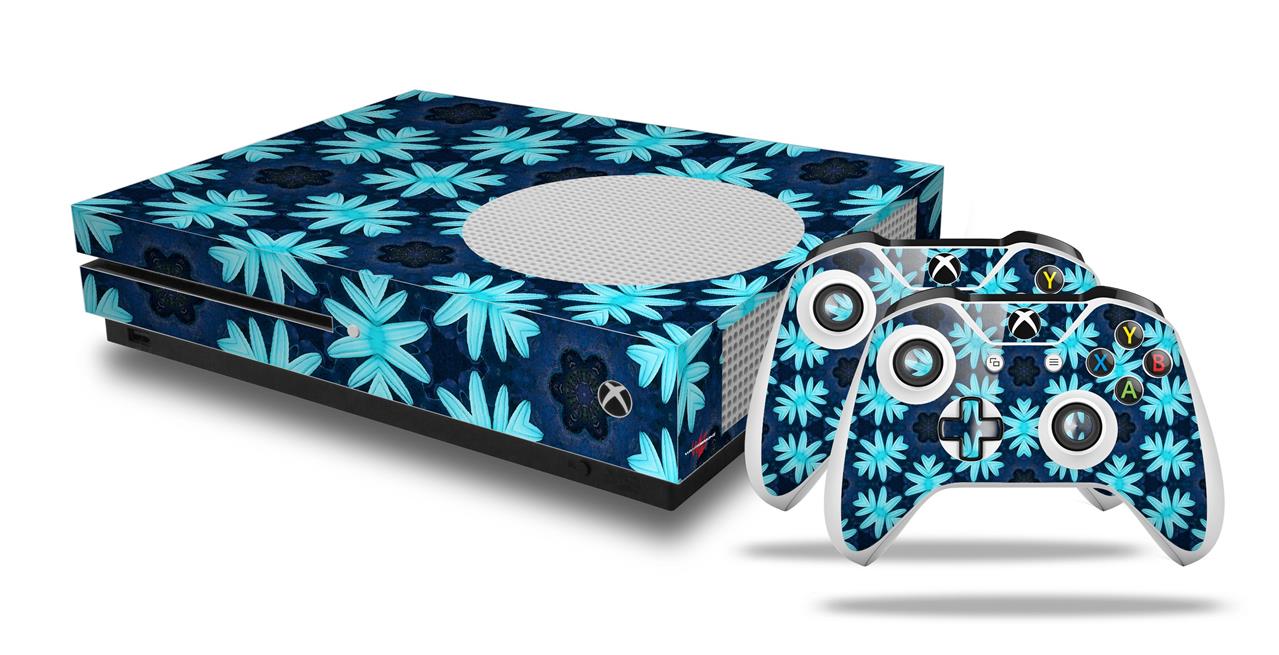 WraptorSkinz Decal Skin Wrap Set works with 2016 and newer XBOX One S Console and 2 Controllers Abstract Floral Blue