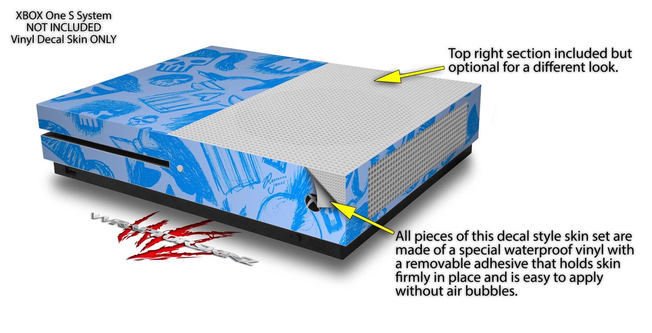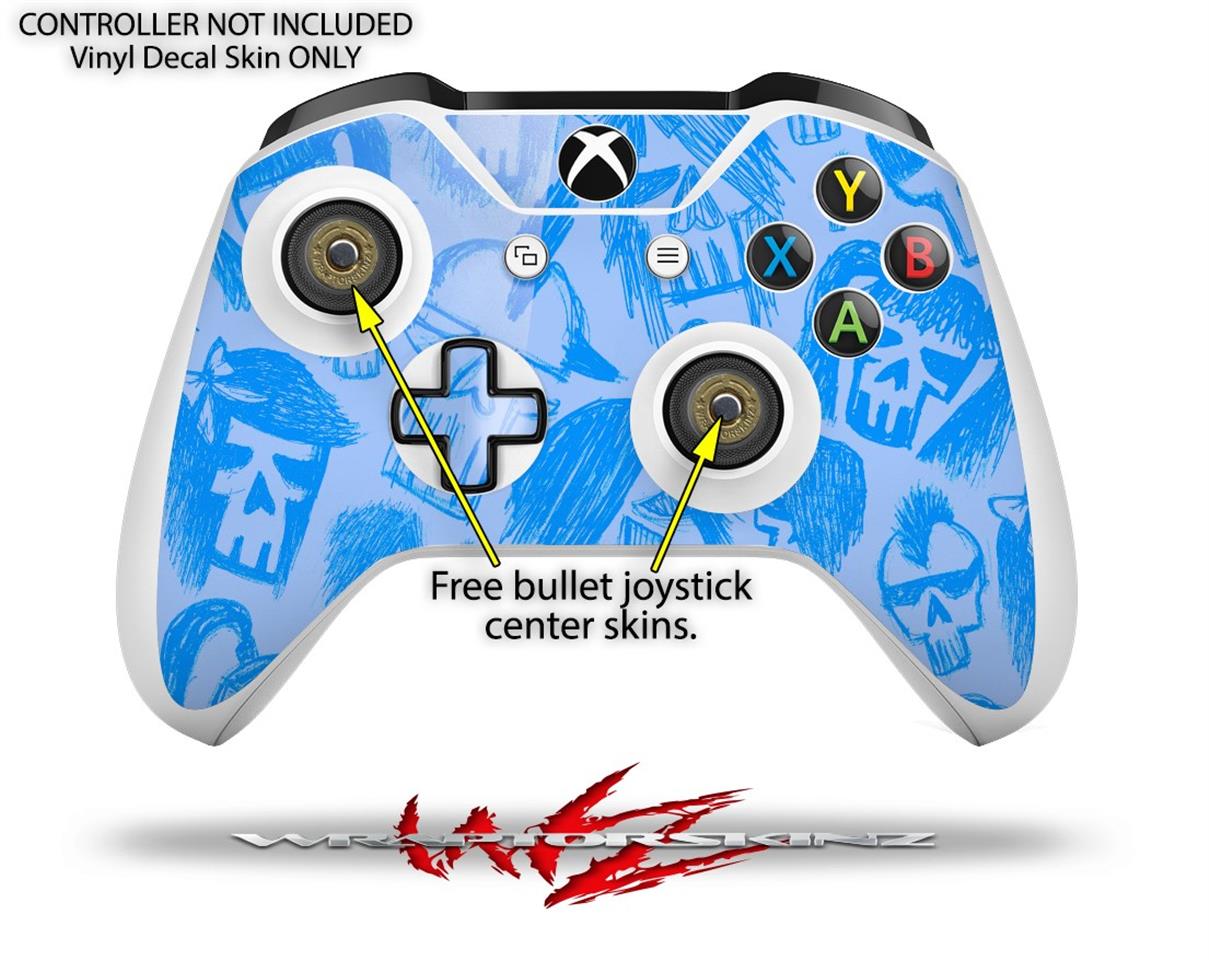 WraptorSkinz Decal Skin Wrap Set works with 2016 and newer XBOX One S Console and 2 Controllers Skull Sketches Blue