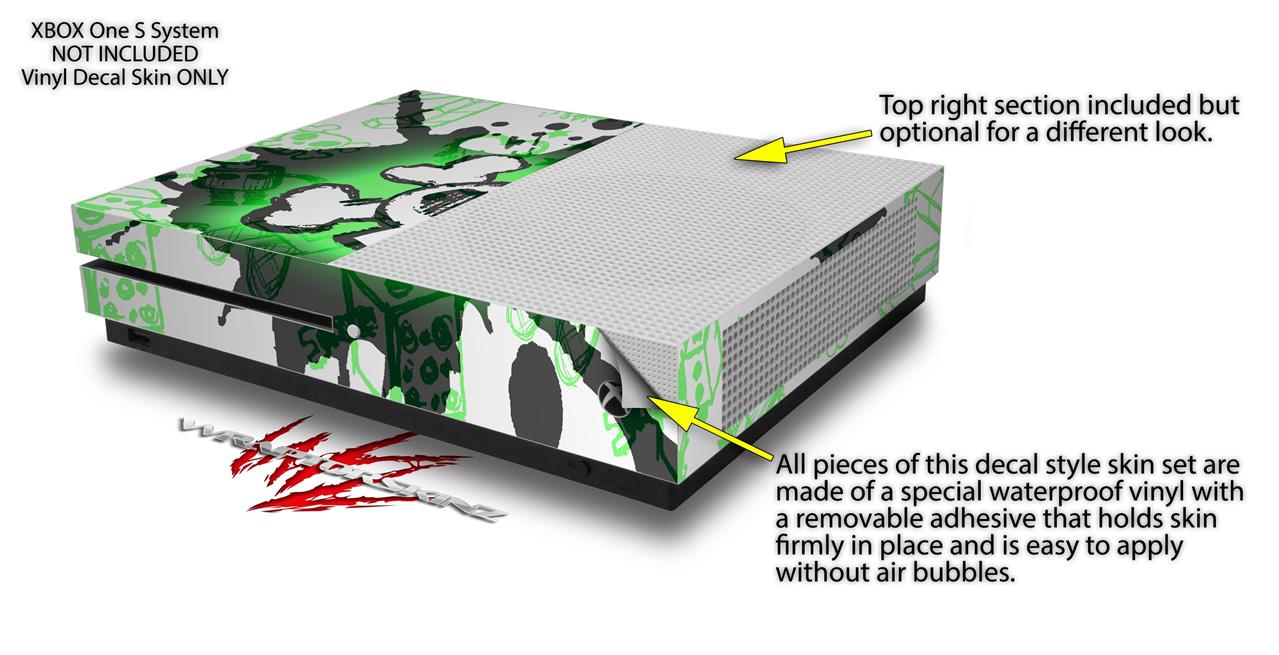 WraptorSkinz Decal Skin Wrap Set works with 2016 and newer XBOX One S Console and 2 Controllers Cartoon Skull Green