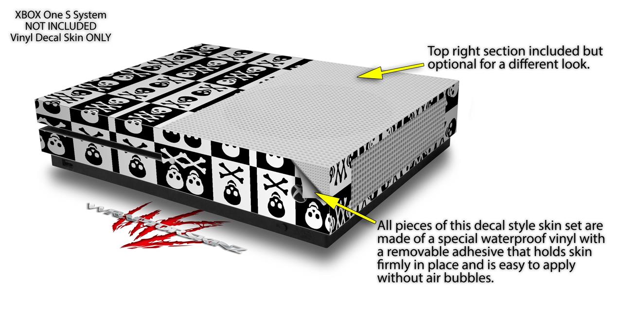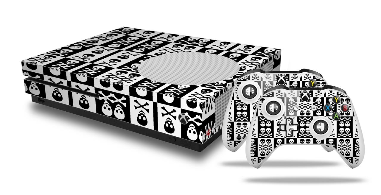 WraptorSkinz Decal Skin Wrap Set works with 2016 and newer XBOX One S Console and 2 Controllers Skull And Crossbones Pattern Bw