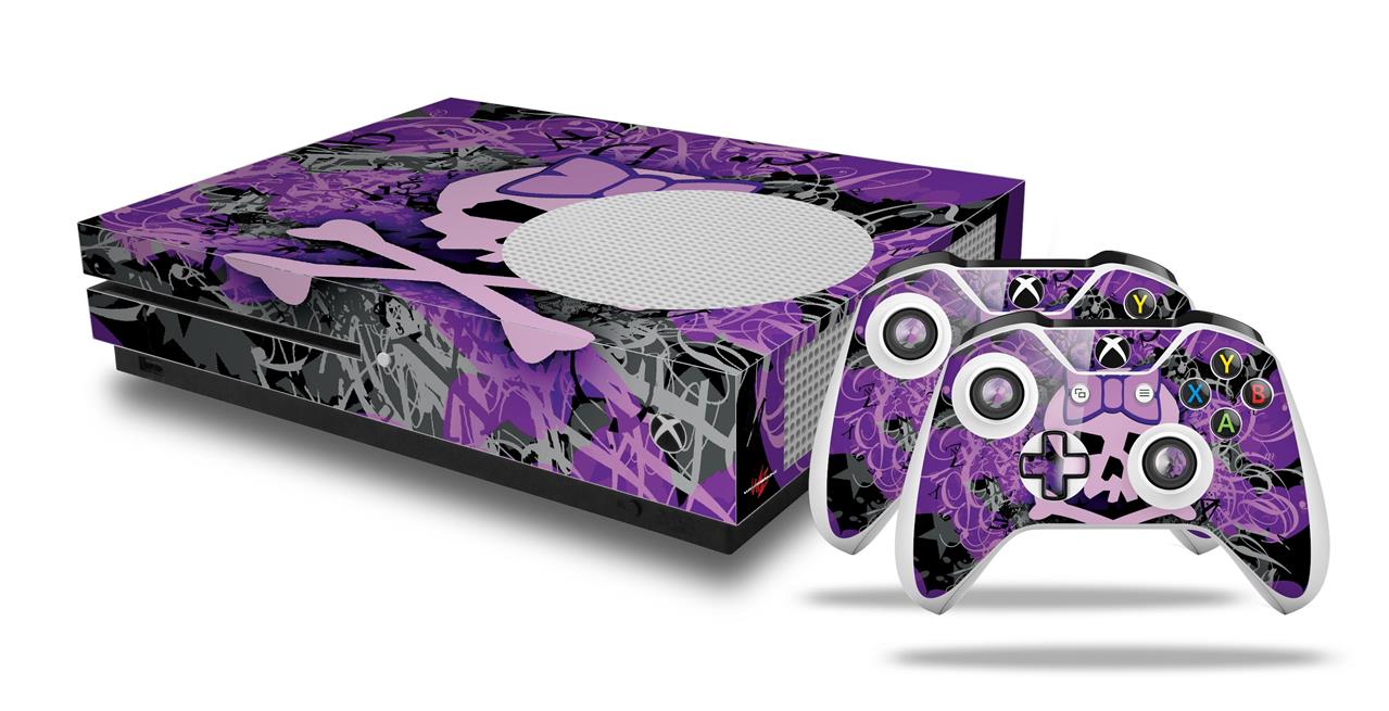 WraptorSkinz Decal Skin Wrap Set works with 2016 and newer XBOX One S Console and 2 Controllers Purple Girly Skull