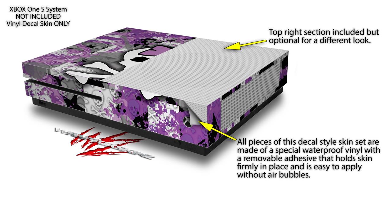 WraptorSkinz Decal Skin Wrap Set works with 2016 and newer XBOX One S Console and 2 Controllers Princess Skull Purple