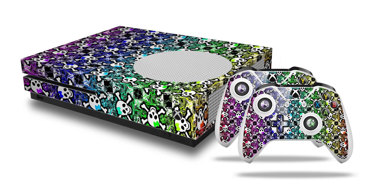 WraptorSkinz Decal Skin Wrap Set works with 2016 and newer XBOX One S Console and 2 Controllers Splatter Girly Skull Rainbow