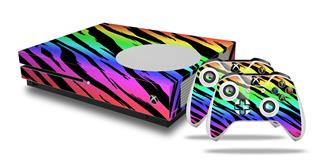 WraptorSkinz Decal Skin Wrap Set works with 2016 and newer XBOX One S Console and 2 Controllers Tiger Rainbow