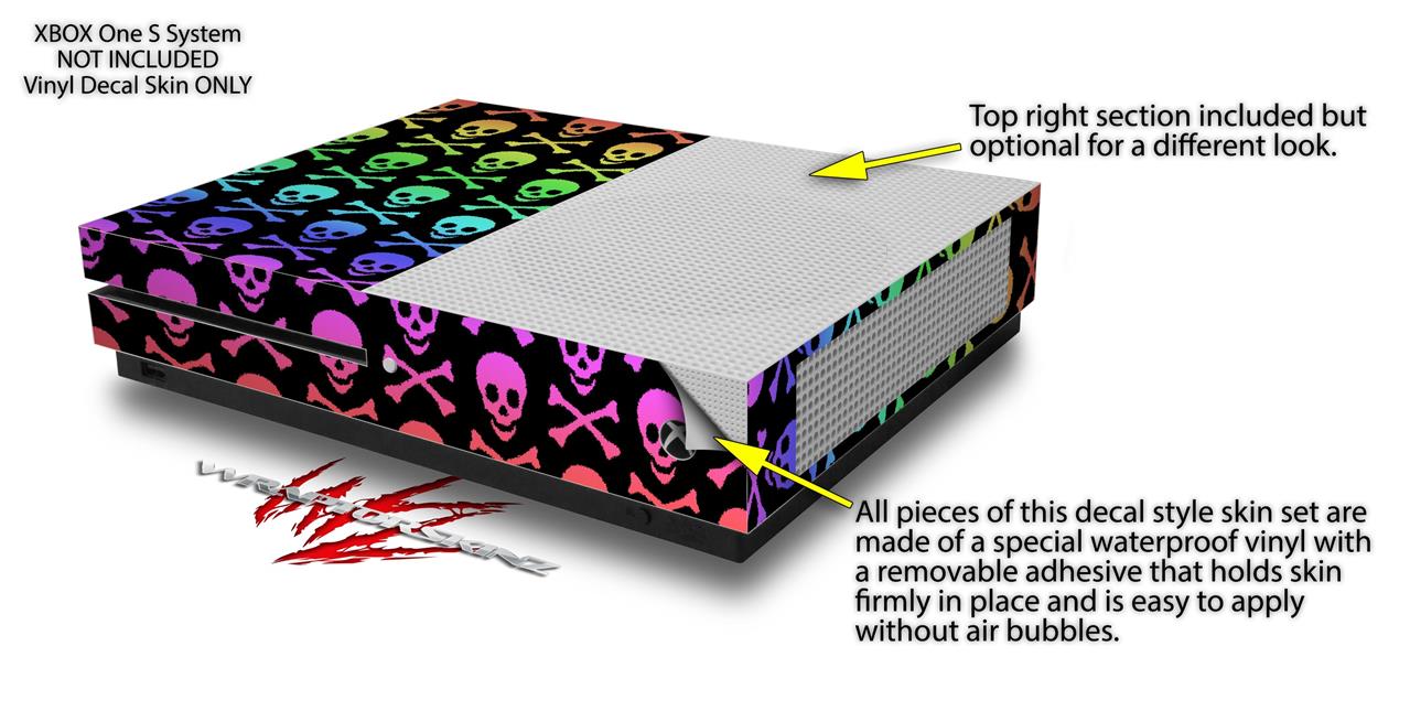 WraptorSkinz Decal Skin Wrap Set works with 2016 and newer XBOX One S Console and 2 Controllers Skull and Crossbones Rainbow