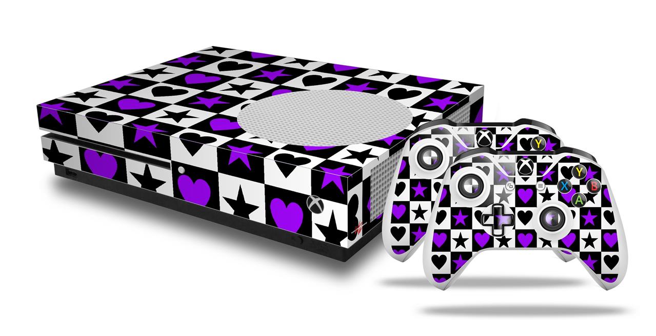 WraptorSkinz Decal Skin Wrap Set works with 2016 and newer XBOX One S Console and 2 Controllers Purple Hearts And Stars
