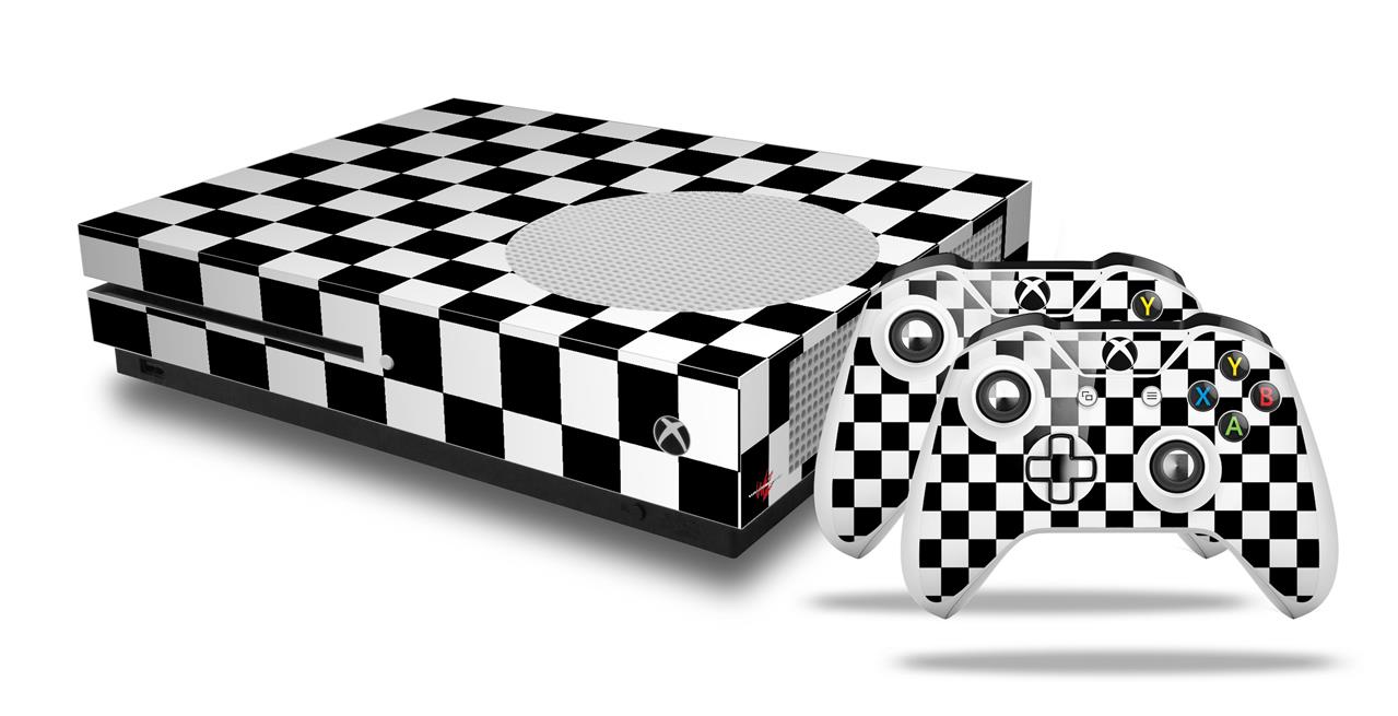 WraptorSkinz Decal Skin Wrap Set works with 2016 and newer XBOX One S Console and 2 Controllers Checkers White