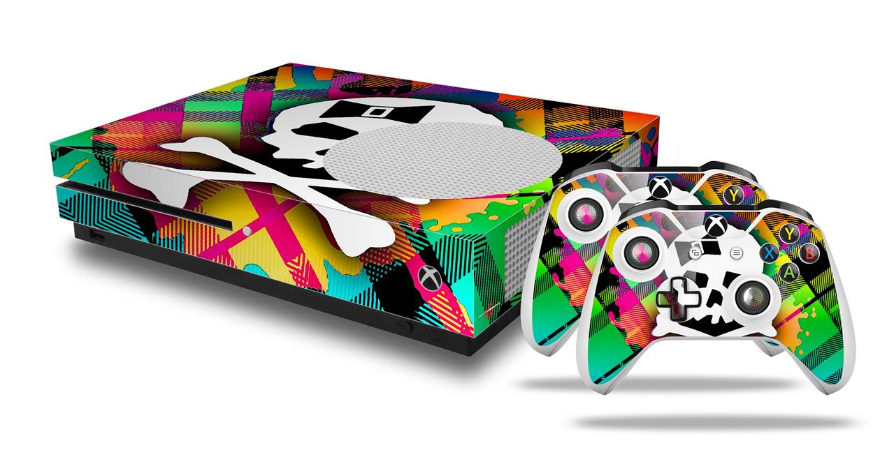 WraptorSkinz Decal Skin Wrap Set works with 2016 and newer XBOX One S Console and 2 Controllers Rainbow Plaid Skull