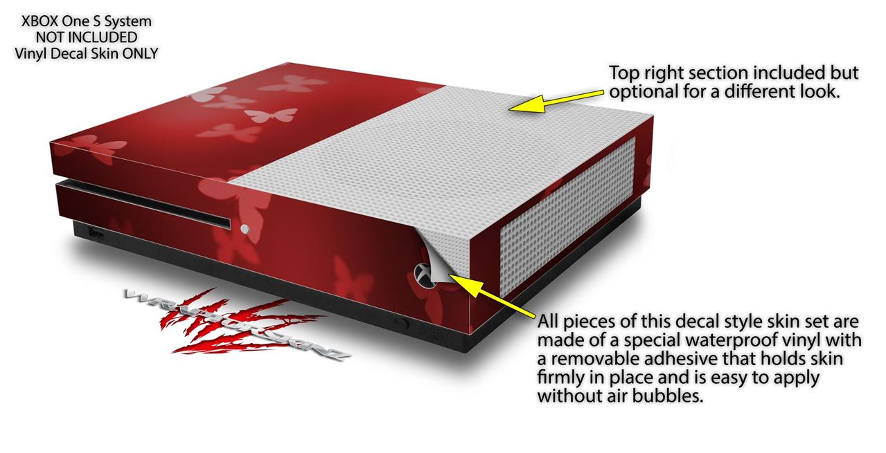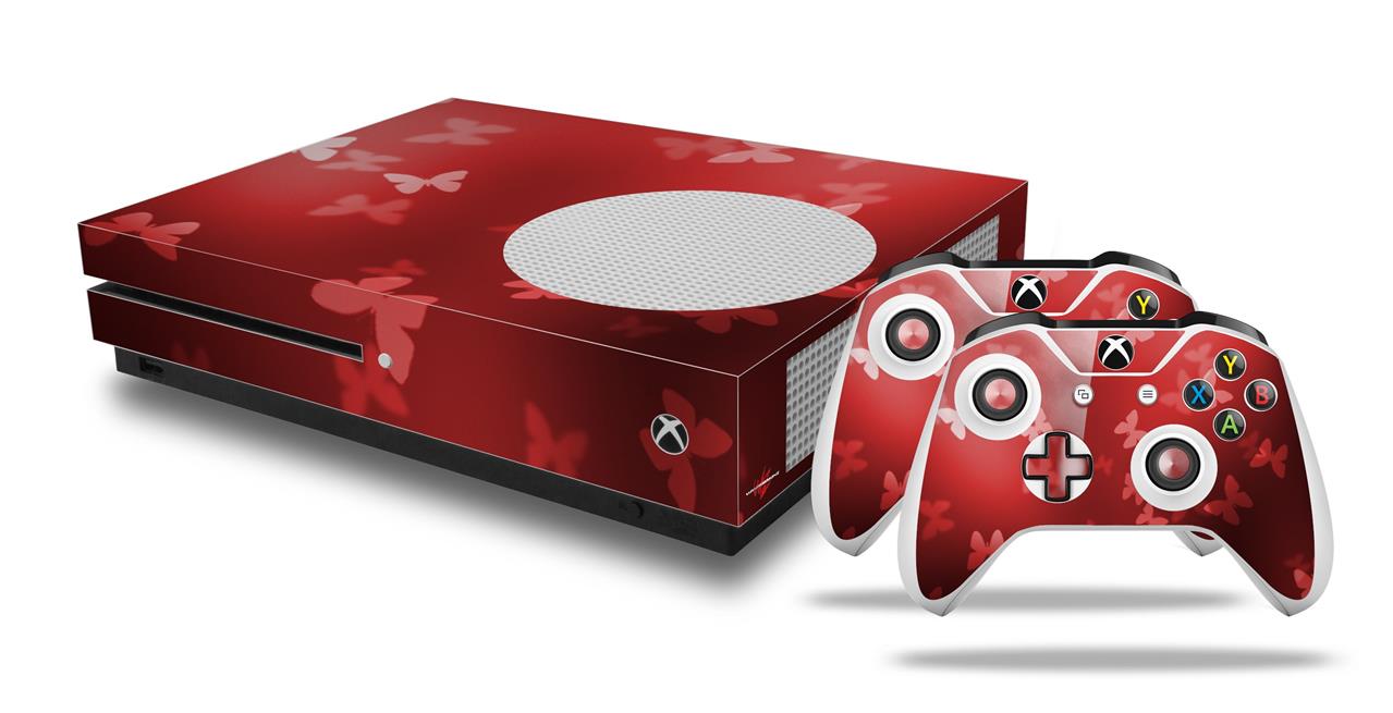 WraptorSkinz Decal Skin Wrap Set works with 2016 and newer XBOX One S Console and 2 Controllers Bokeh Butterflies Red