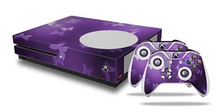 WraptorSkinz Decal Skin Wrap Set works with 2016 and newer XBOX One S Console and 2 Controllers Bokeh Butterflies Purple