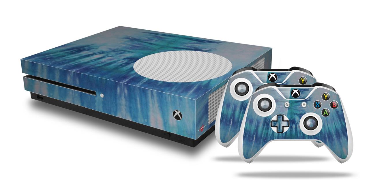 WraptorSkinz Decal Skin Wrap Set works with 2016 and newer XBOX One S Console and 2 Controllers Tie Dye All Blue Stripes