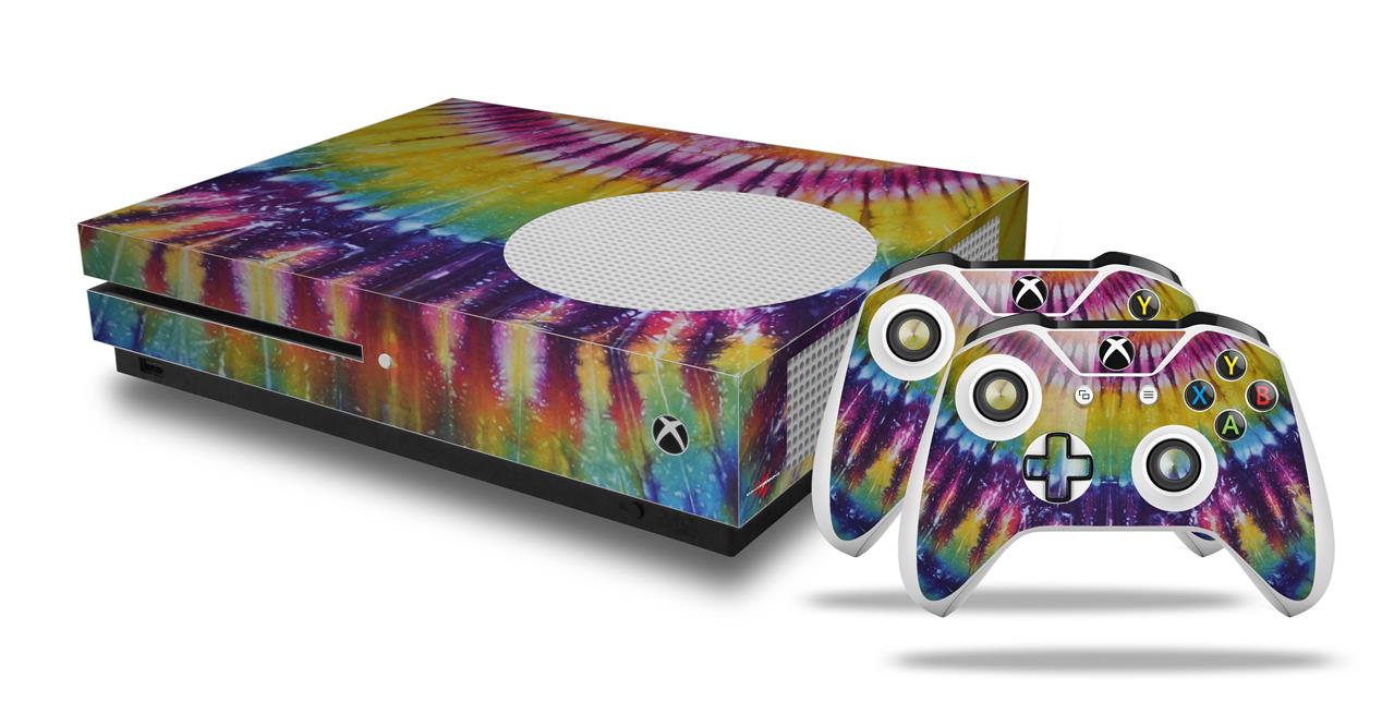 WraptorSkinz Decal Skin Wrap Set works with 2016 and newer XBOX One S Console and 2 Controllers Tie Dye Purple Gears