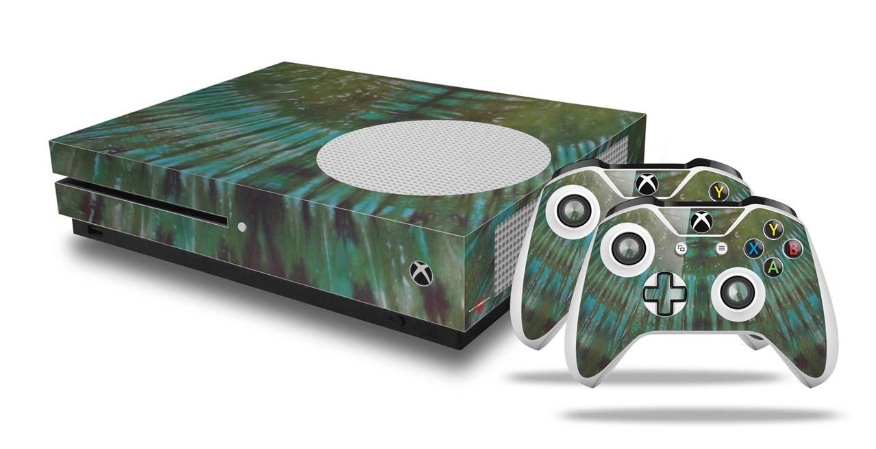 WraptorSkinz Decal Skin Wrap Set works with 2016 and newer XBOX One S Console and 2 Controllers Tie Dye Turquoise Stripes