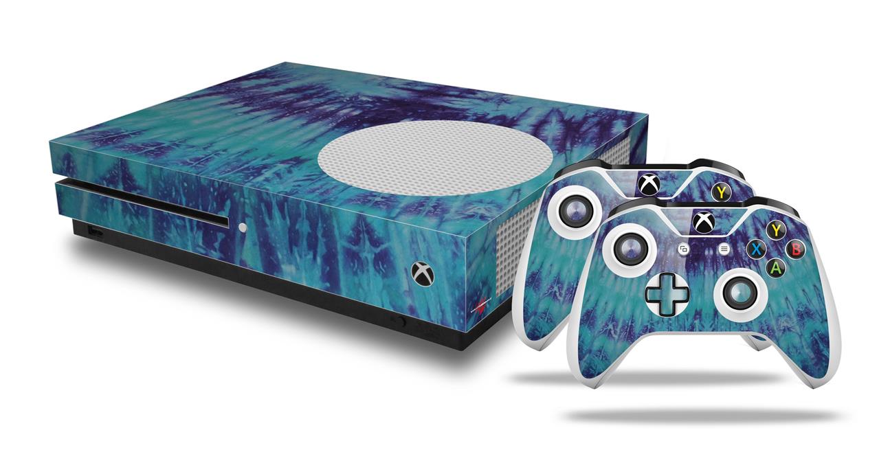 WraptorSkinz Decal Skin Wrap Set works with 2016 and newer XBOX One S Console and 2 Controllers Tie Dye Blue Stripes