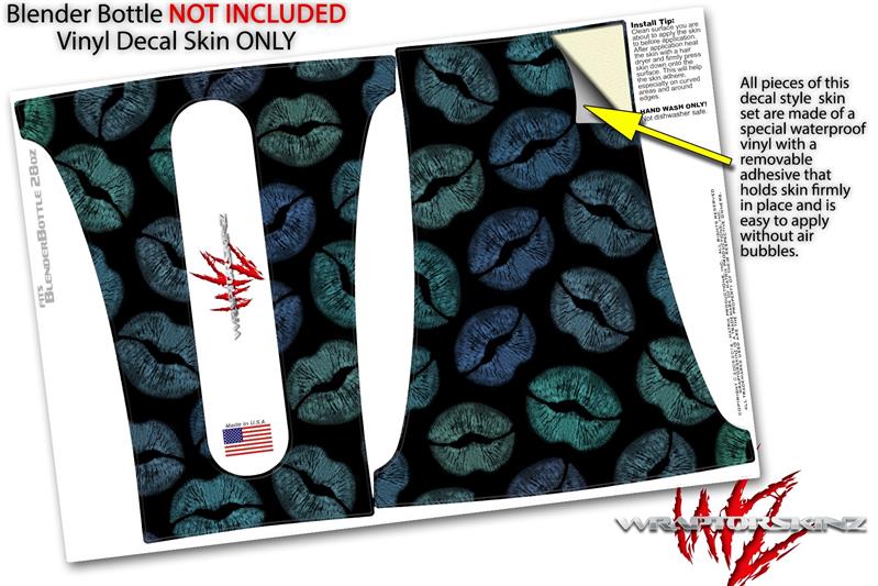 Decal Style Skin Wrap works with Blender Bottle 28oz Blue Green And Black Lips (BOTTLE NOT INCLUDED)