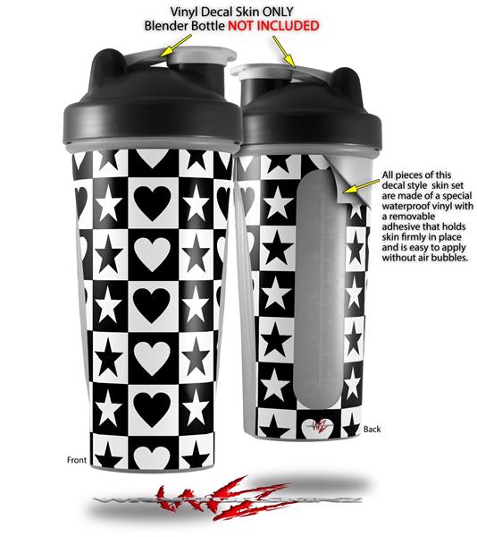 Decal Style Skin Wrap works with Blender Bottle 28oz Hearts And Stars Black and White (BOTTLE NOT INCLUDED)