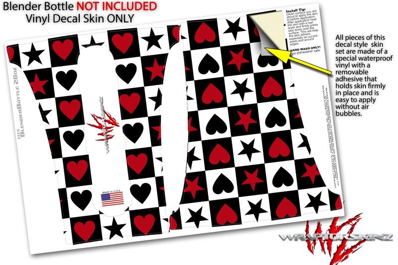 Decal Style Skin Wrap works with Blender Bottle 28oz Hearts and Stars Red (BOTTLE NOT INCLUDED)
