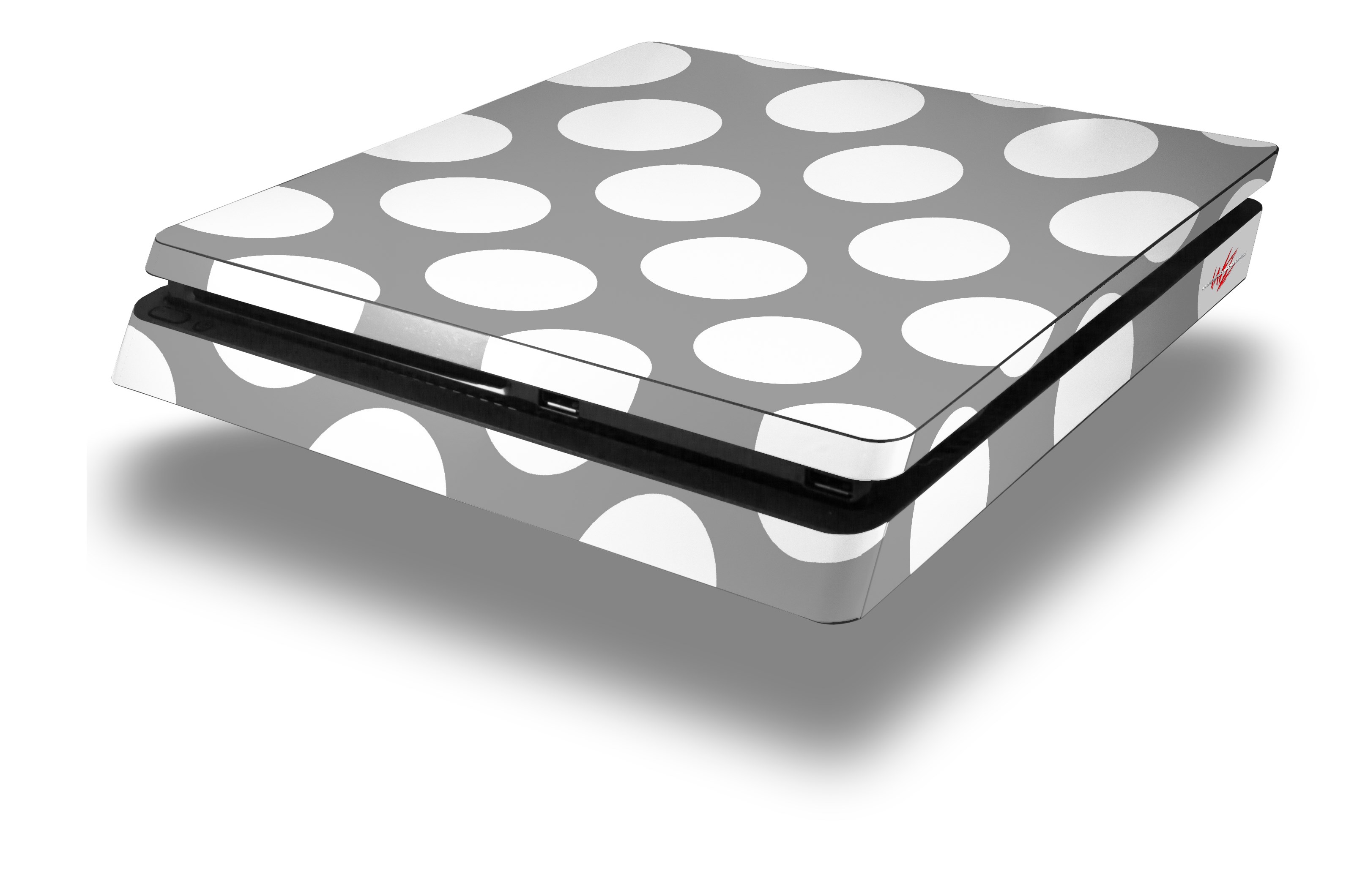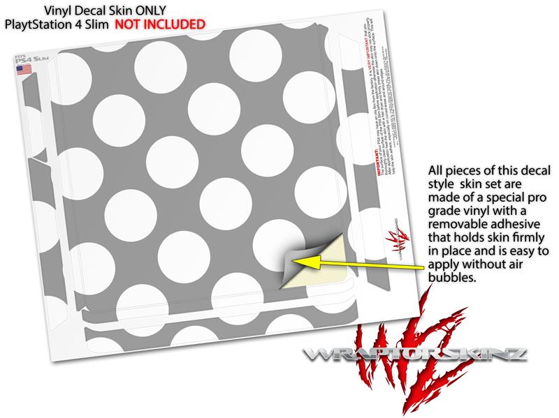 Vinyl Decal Skin Wrap compatible with Sony PlayStation 4 Slim Console Kearas Polka Dots Whtie On Gray (PS4 NOT INCLUDED)