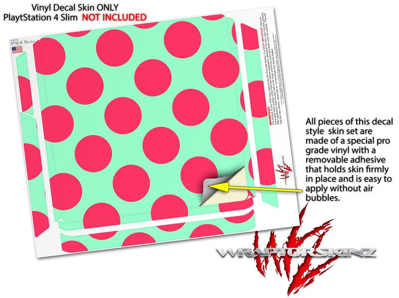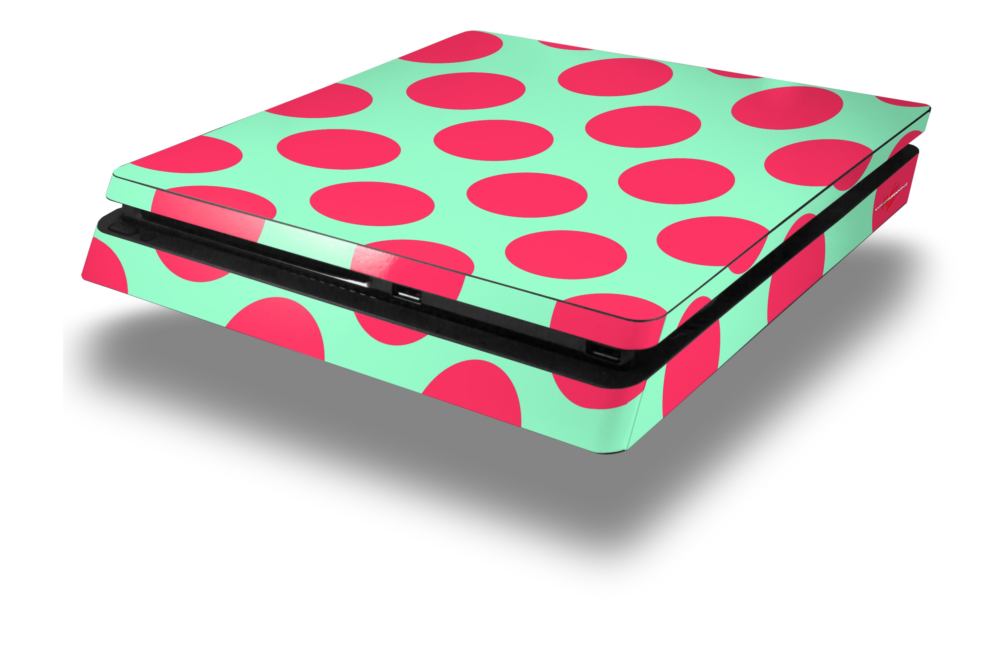 Vinyl Decal Skin Wrap compatible with Sony PlayStation 4 Slim Console Kearas Polka Dots Pink And Blue (PS4 NOT INCLUDED)