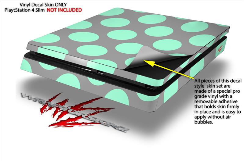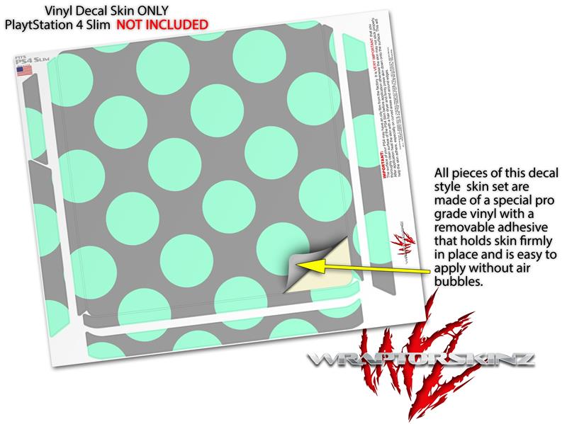 Vinyl Decal Skin Wrap compatible with Sony PlayStation 4 Slim Console Kearas Polka Dots Mint And Gray (PS4 NOT INCLUDED)