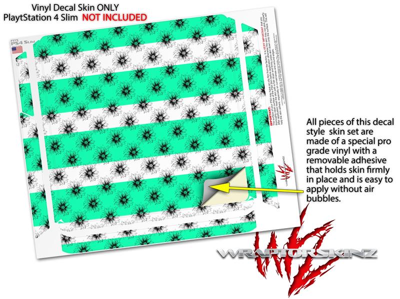 Vinyl Decal Skin Wrap compatible with Sony PlayStation 4 Slim Console Kearas Daisies Stripe SeaFoam (PS4 NOT INCLUDED)