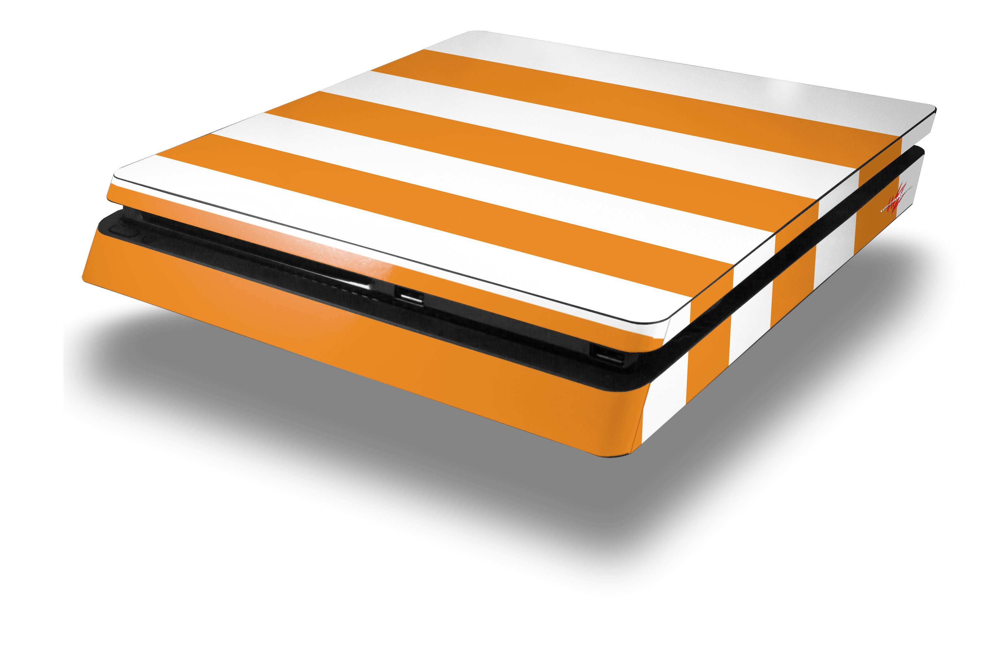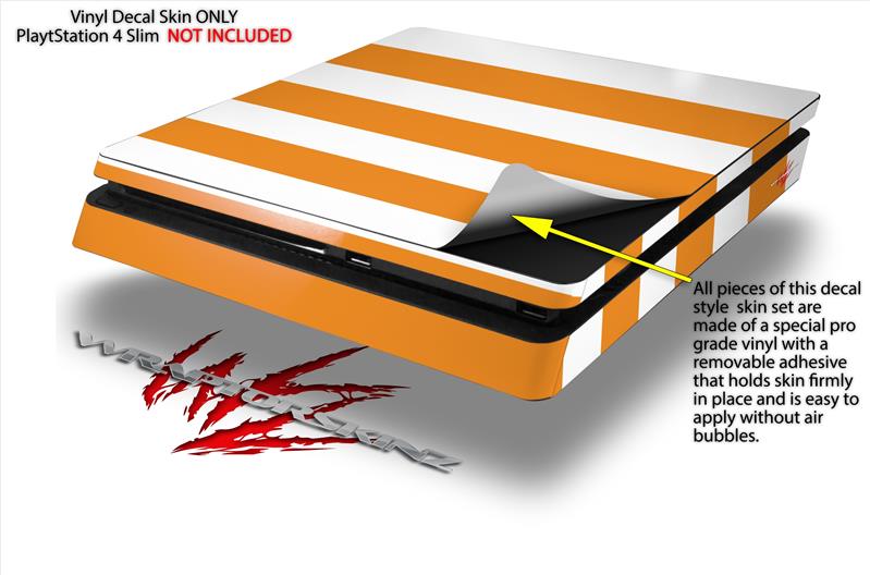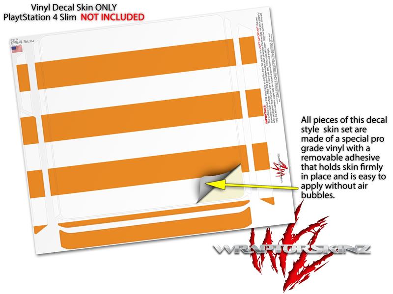 Vinyl Decal Skin Wrap compatible with Sony PlayStation 4 Slim Console Psycho Stripes Orange and White (PS4 NOT INCLUDED)