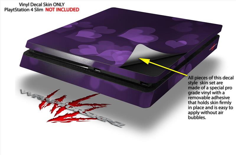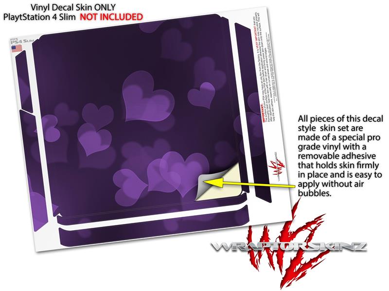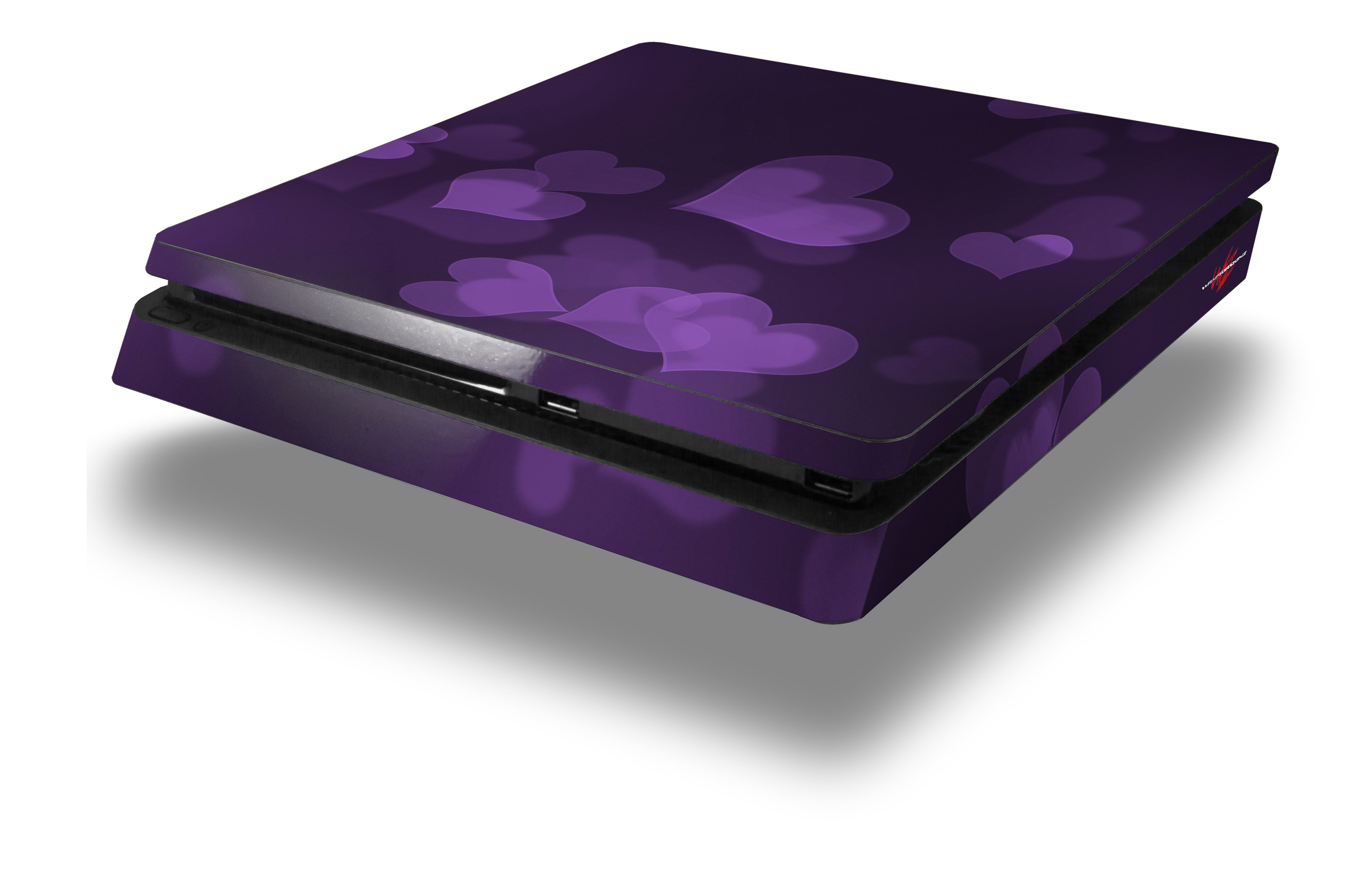Vinyl Decal Skin Wrap compatible with Sony PlayStation 4 Slim Console Bokeh Hearts Purple (PS4 NOT INCLUDED)