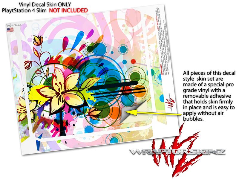 Vinyl Decal Skin Wrap compatible with Sony PlayStation 4 Slim Console Floral Splash (PS4 NOT INCLUDED)