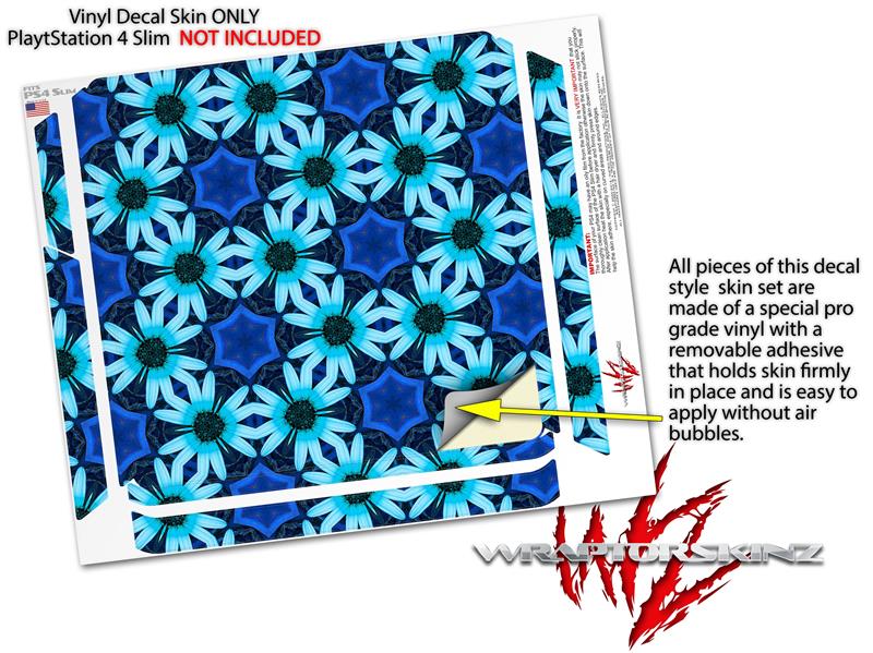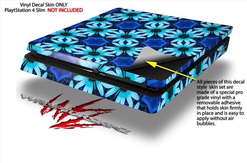 Vinyl Decal Skin Wrap compatible with Sony PlayStation 4 Slim Console Daisies Blue (PS4 NOT INCLUDED)
