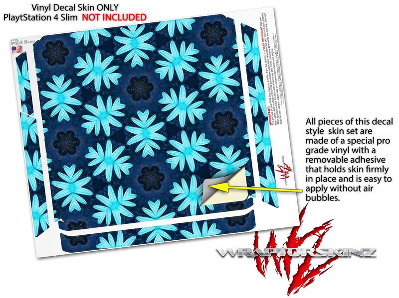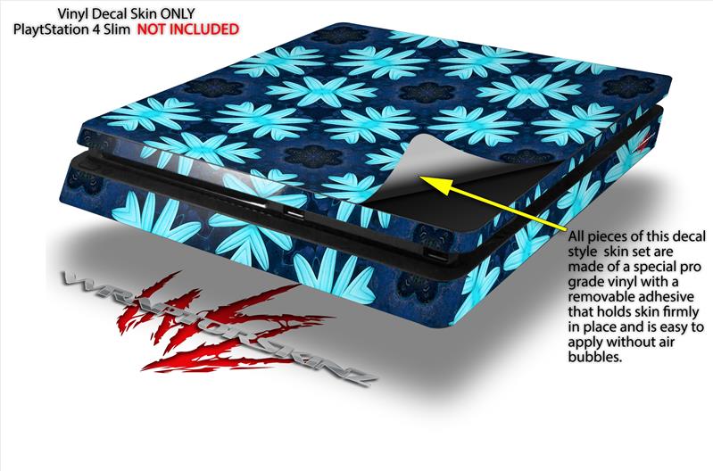 Vinyl Decal Skin Wrap compatible with Sony PlayStation 4 Slim Console Abstract Floral Blue (PS4 NOT INCLUDED)