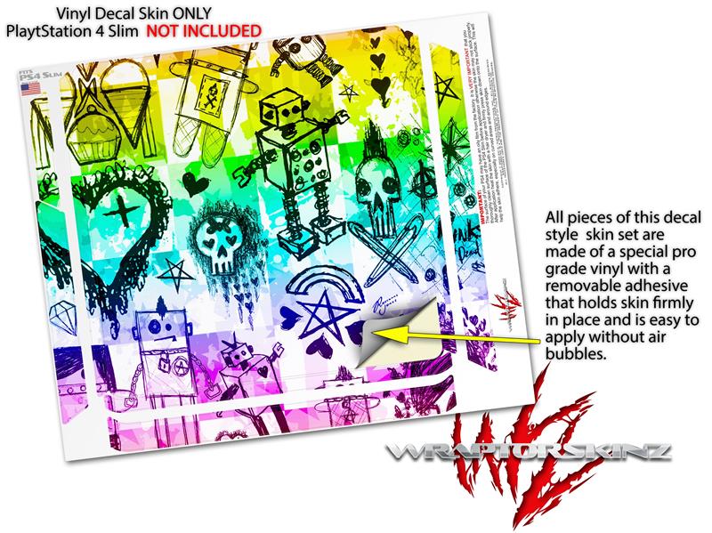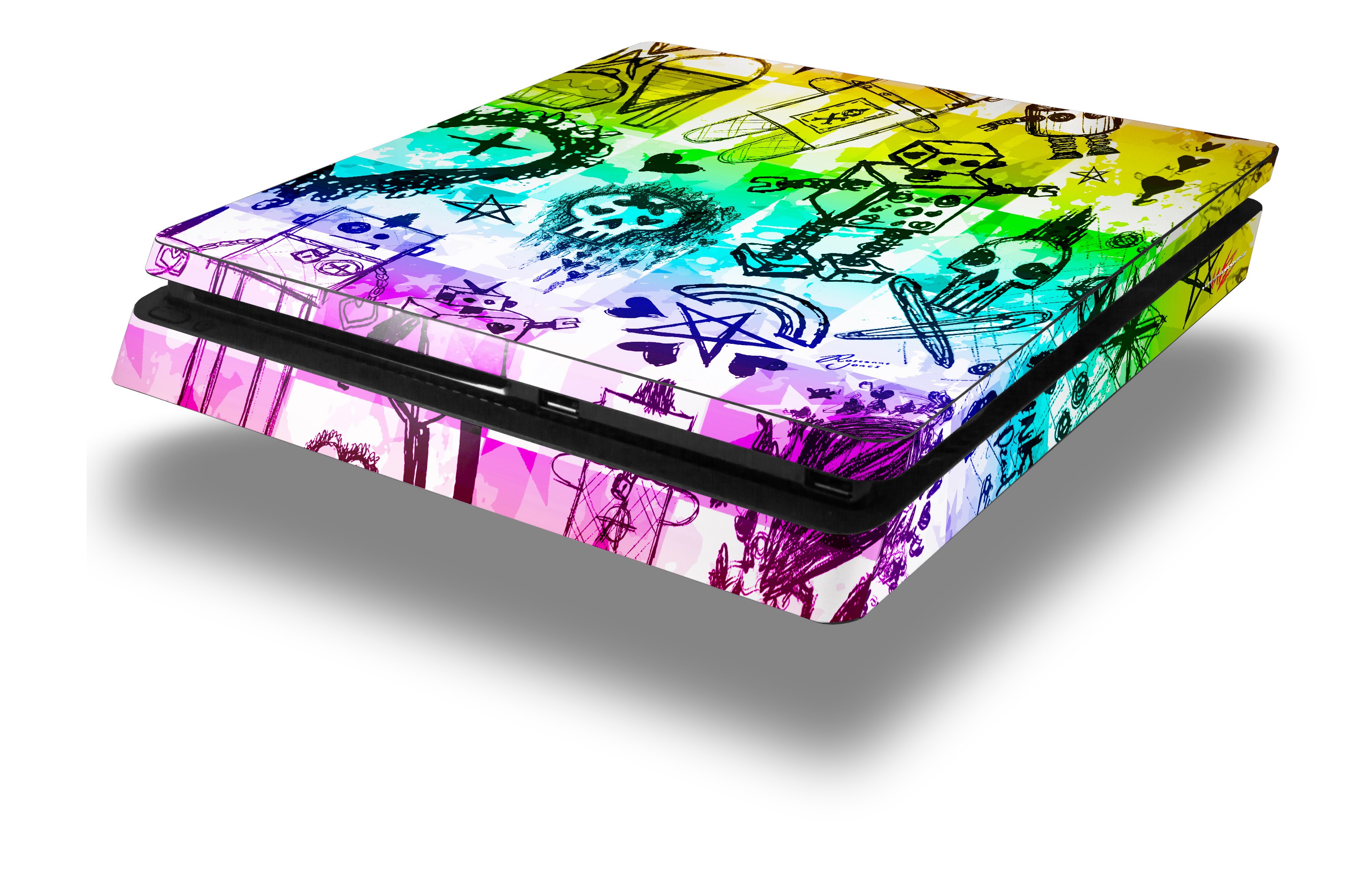 Vinyl Decal Skin Wrap compatible with Sony PlayStation 4 Slim Console Scene Kid Sketches Rainbow (PS4 NOT INCLUDED)