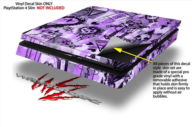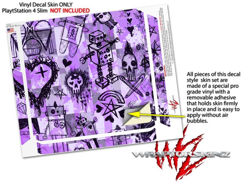 Vinyl Decal Skin Wrap compatible with Sony PlayStation 4 Slim Console Scene Kid Sketches Purple (PS4 NOT INCLUDED)