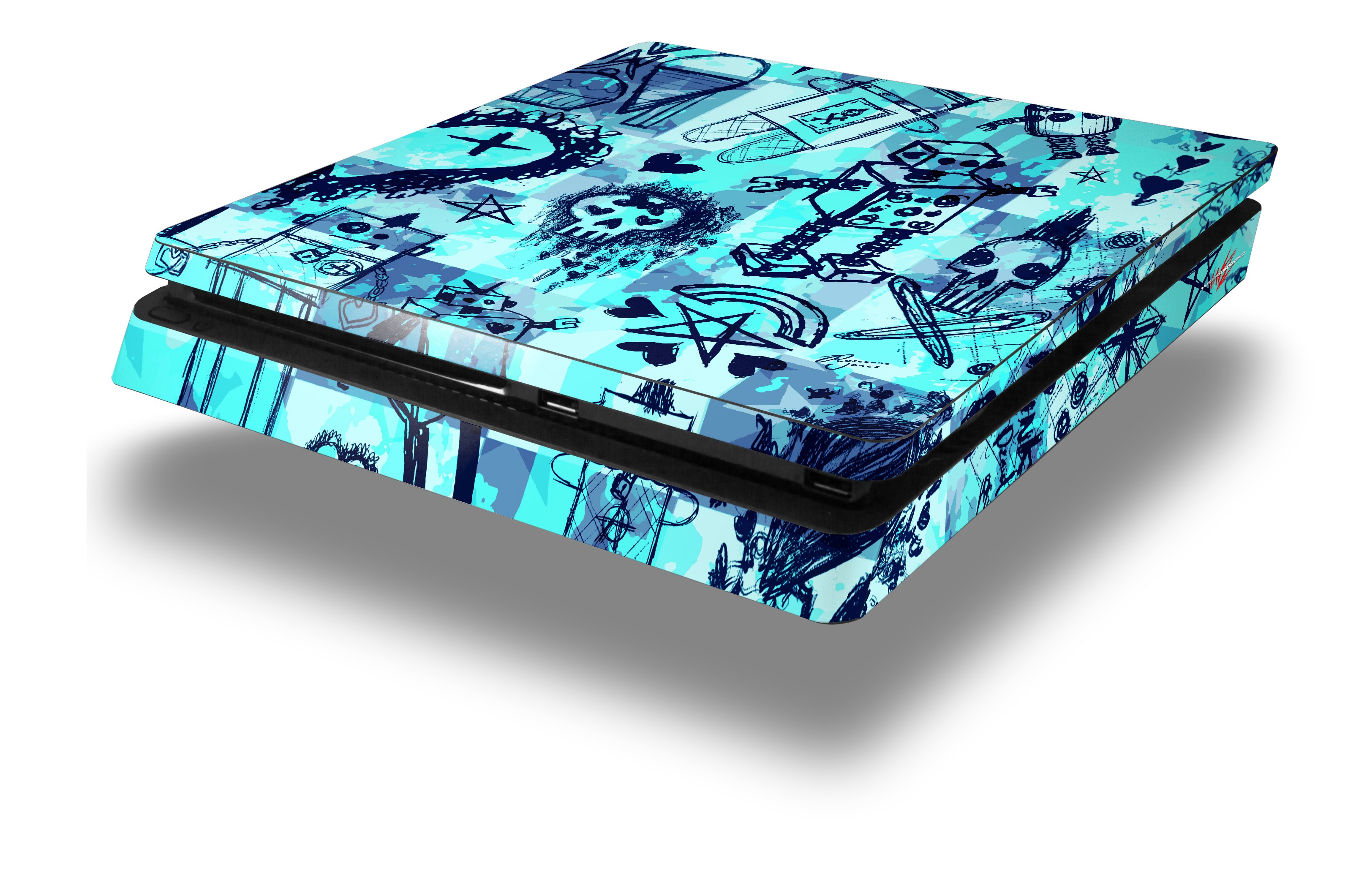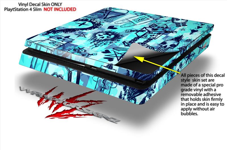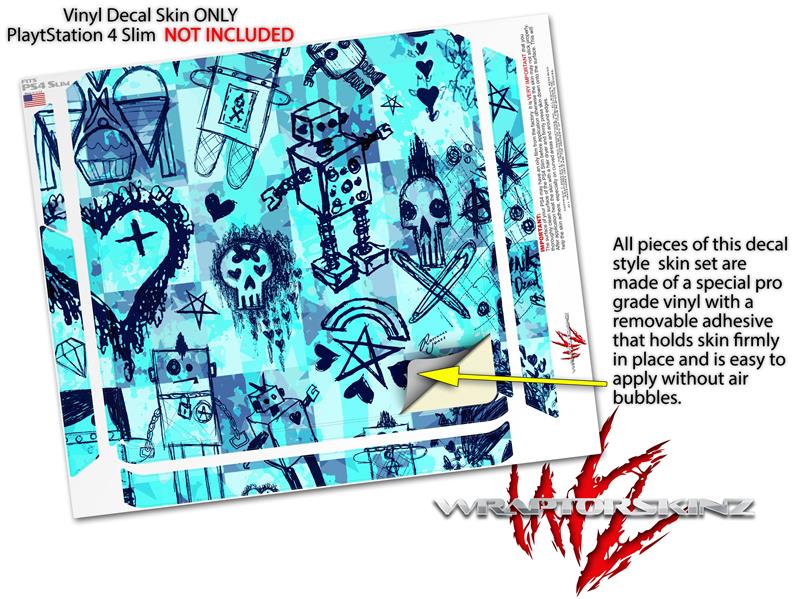 Vinyl Decal Skin Wrap compatible with Sony PlayStation 4 Slim Console Scene Kid Sketches Blue (PS4 NOT INCLUDED)