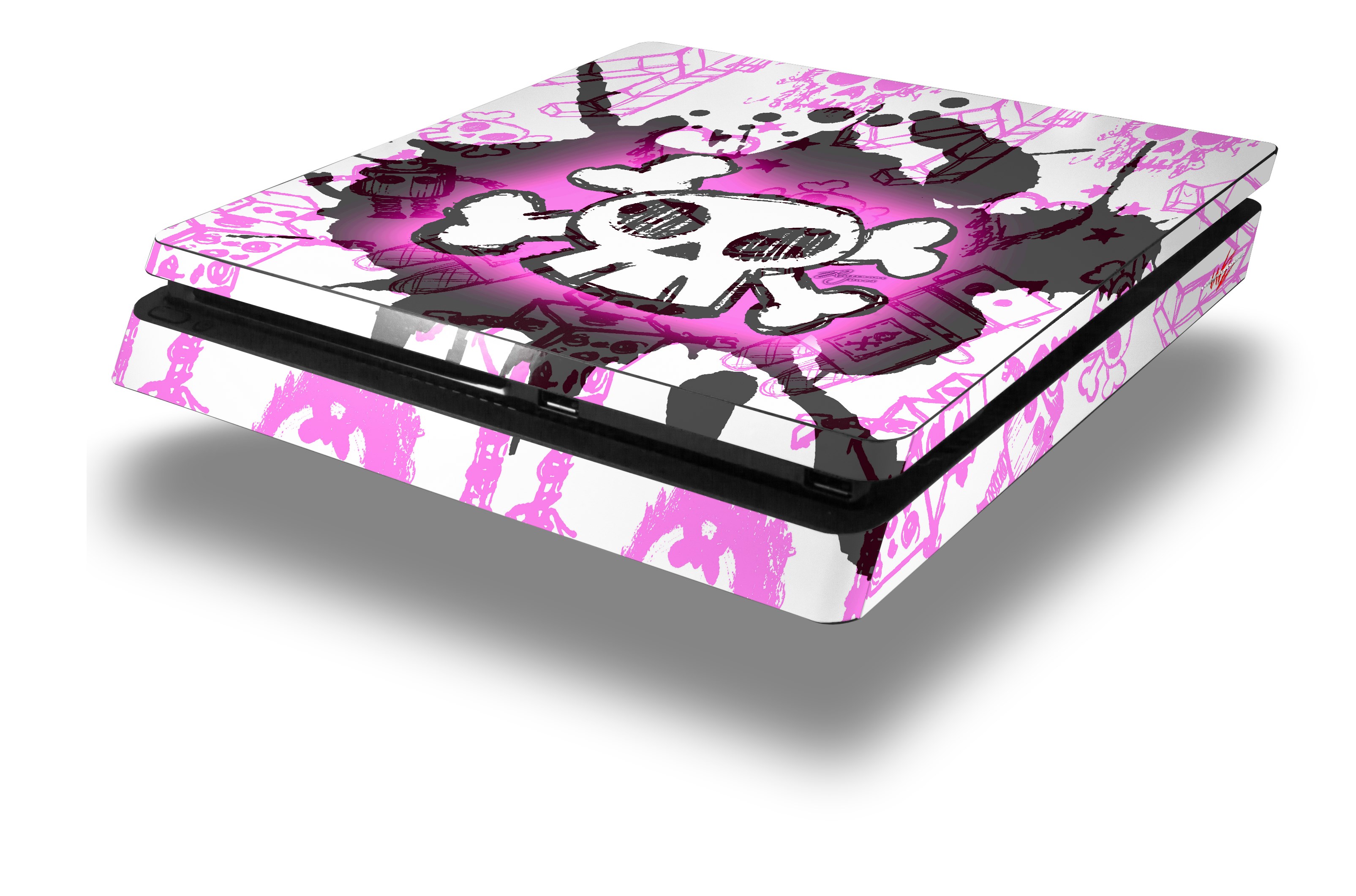 Vinyl Decal Skin Wrap compatible with Sony PlayStation 4 Slim Console Cartoon Skull Pink (PS4 NOT INCLUDED)