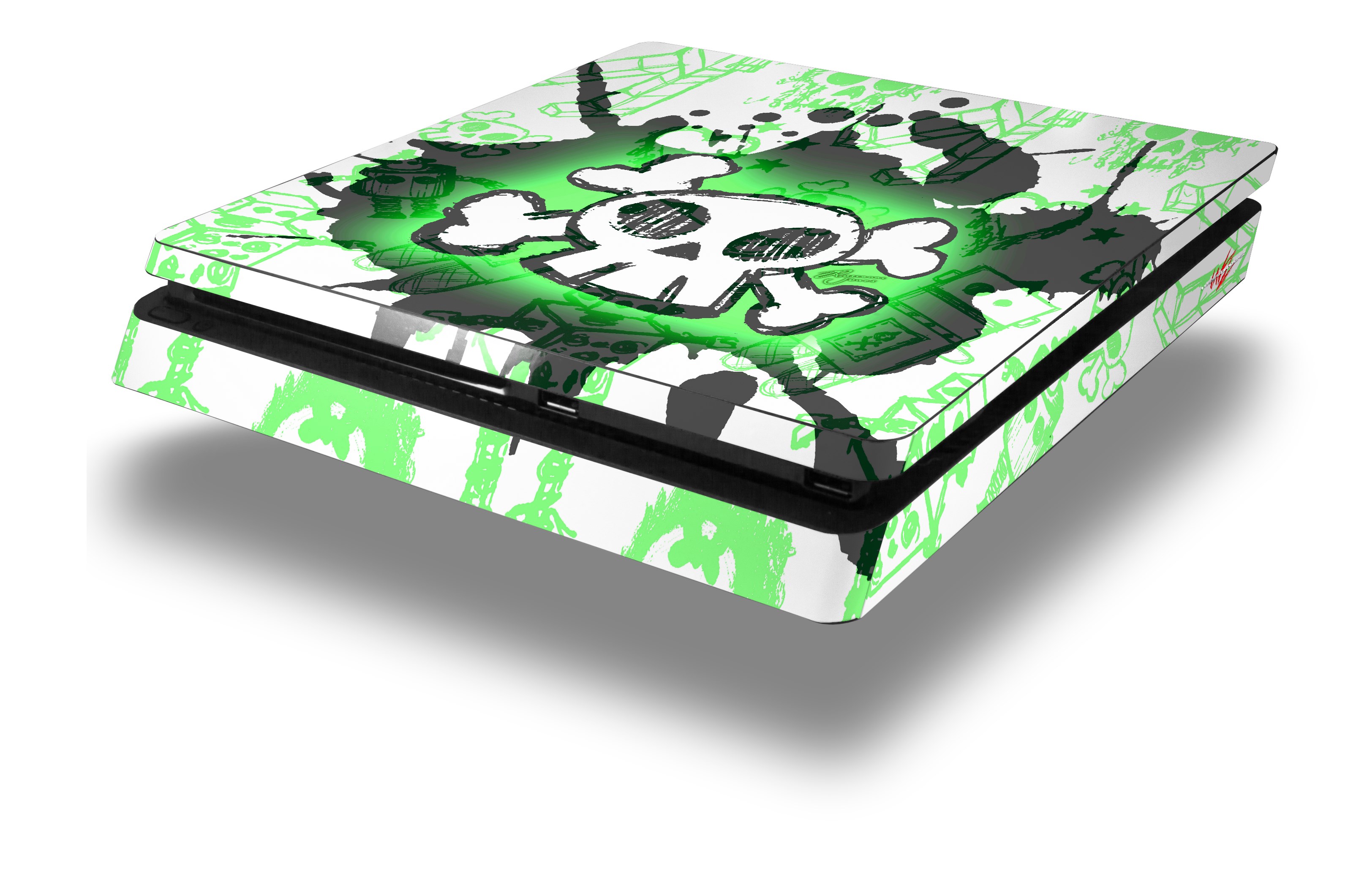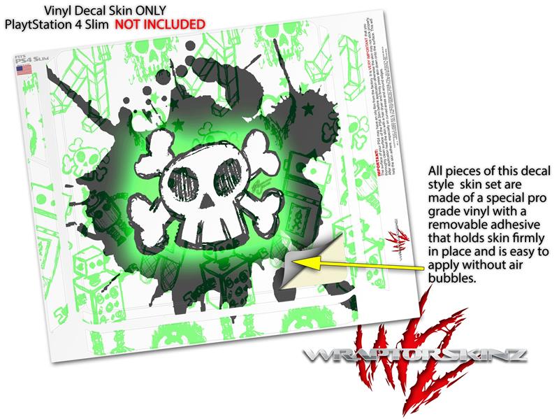 Vinyl Decal Skin Wrap compatible with Sony PlayStation 4 Slim Console Cartoon Skull Green (PS4 NOT INCLUDED)