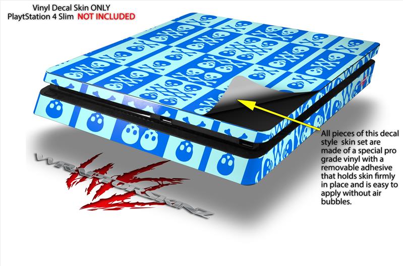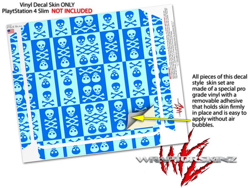 Vinyl Decal Skin Wrap compatible with Sony PlayStation 4 Slim Console Skull And Crossbones Pattern Blue (PS4 NOT INCLUDED)
