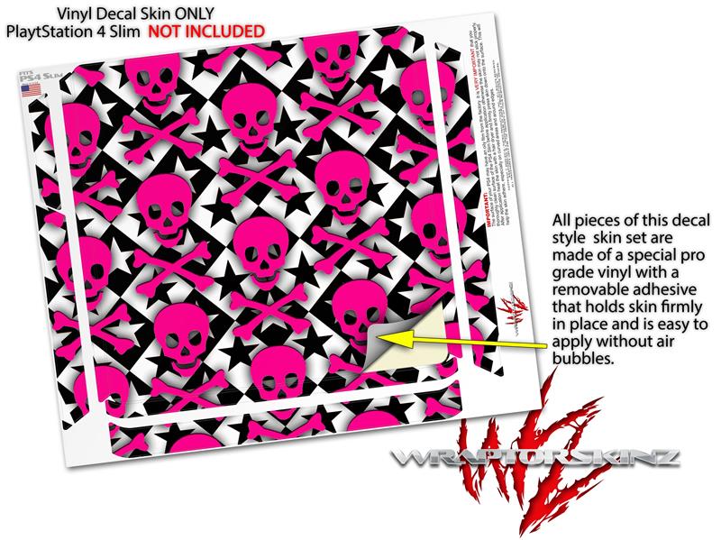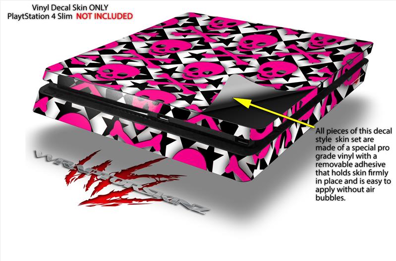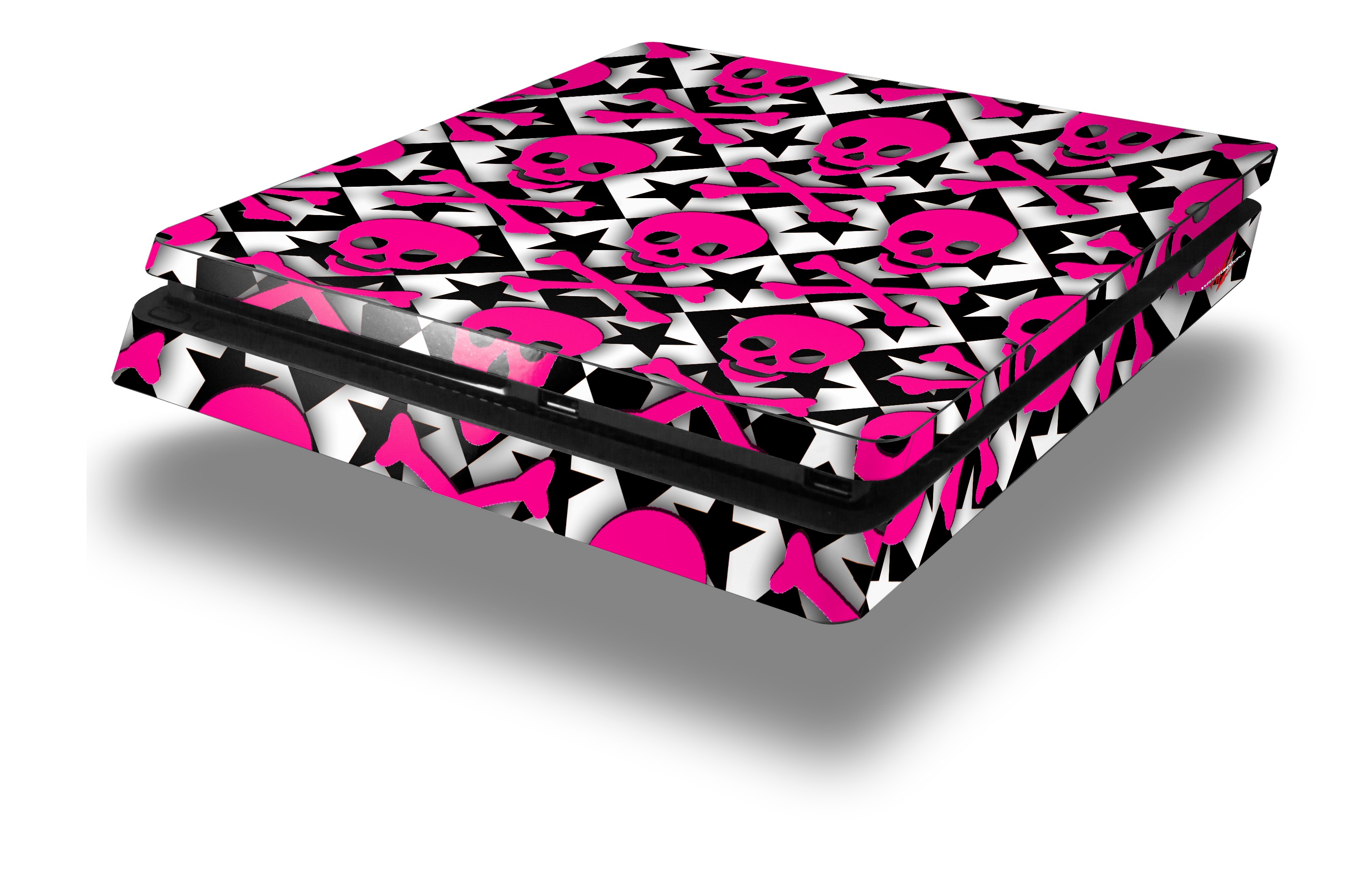 Vinyl Decal Skin Wrap compatible with Sony PlayStation 4 Slim Console Pink Skulls and Stars (PS4 NOT INCLUDED)