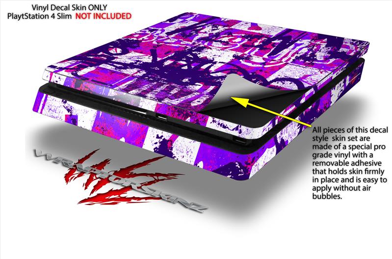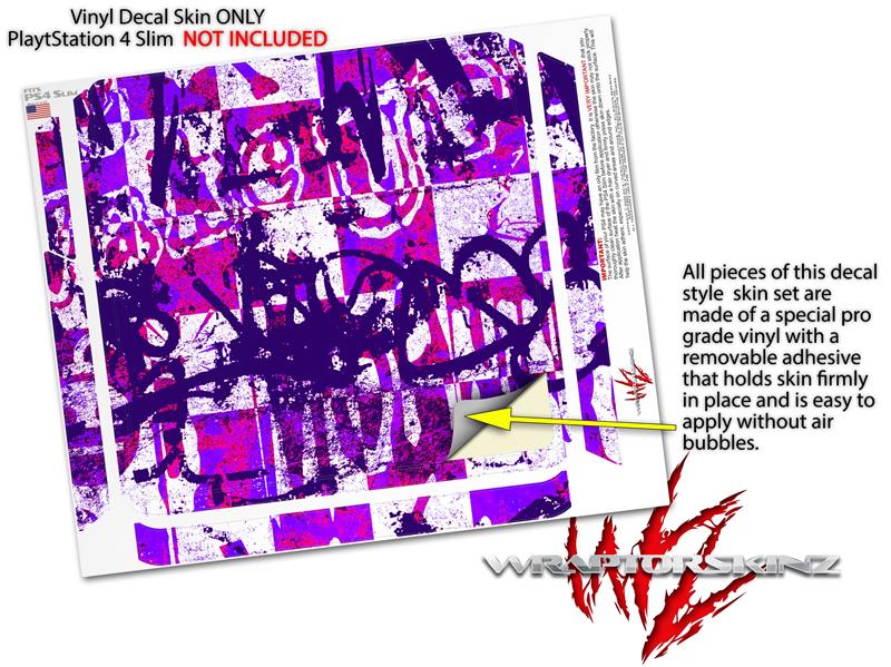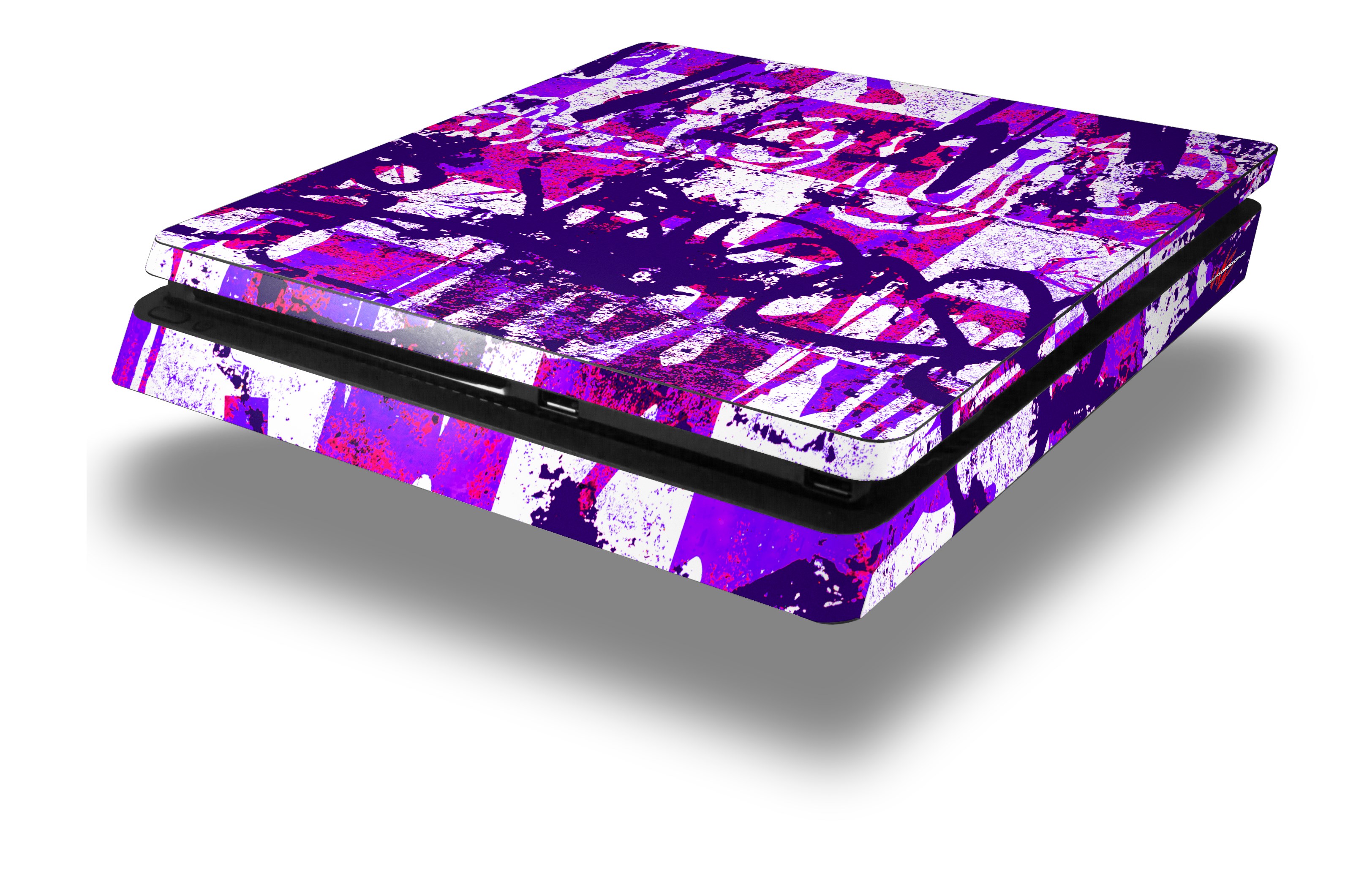Vinyl Decal Skin Wrap compatible with Sony PlayStation 4 Slim Console Purple Checker Graffiti (PS4 NOT INCLUDED)