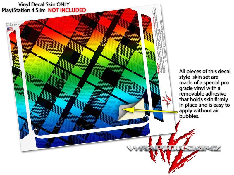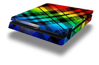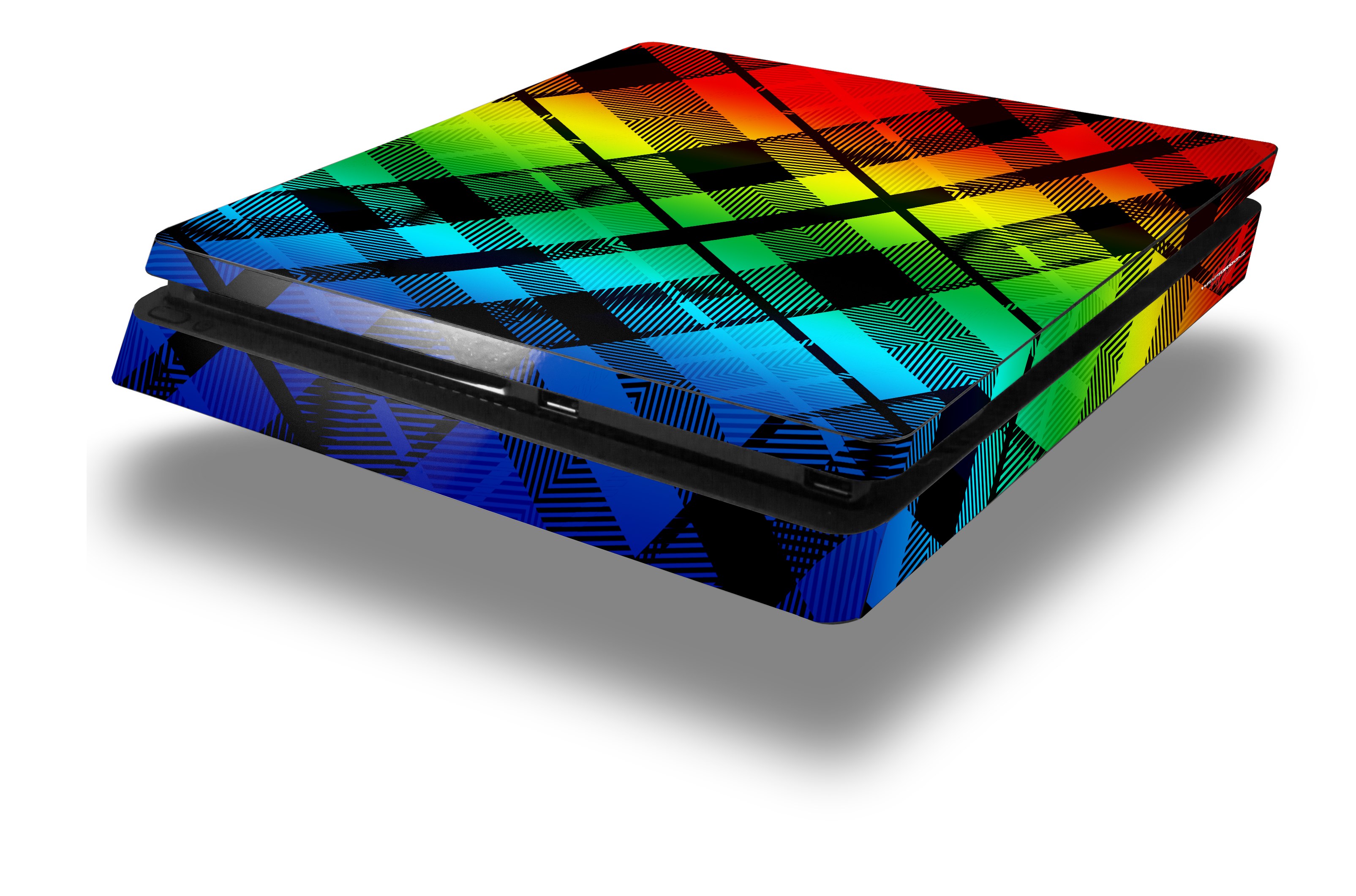 Vinyl Decal Skin Wrap compatible with Sony PlayStation 4 Slim Console Rainbow Plaid (PS4 NOT INCLUDED)