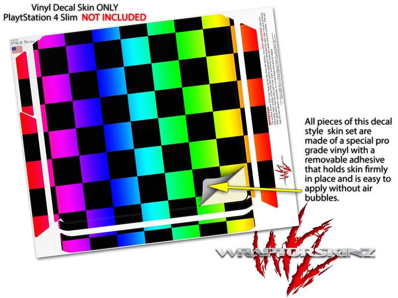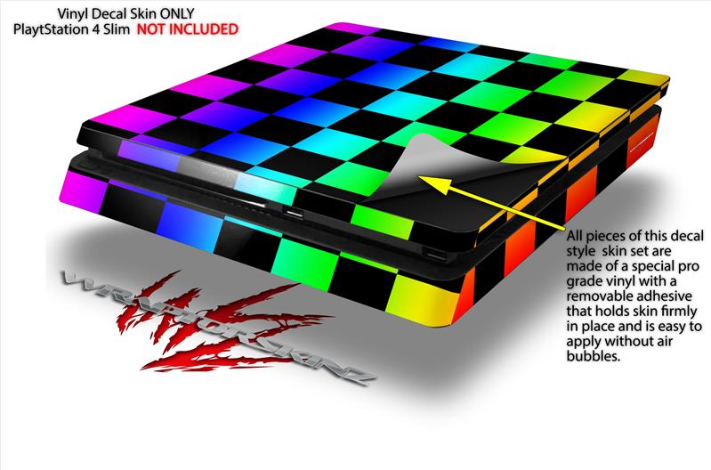 Vinyl Decal Skin Wrap compatible with Sony PlayStation 4 Slim Console Rainbow Checkerboard (PS4 NOT INCLUDED)