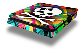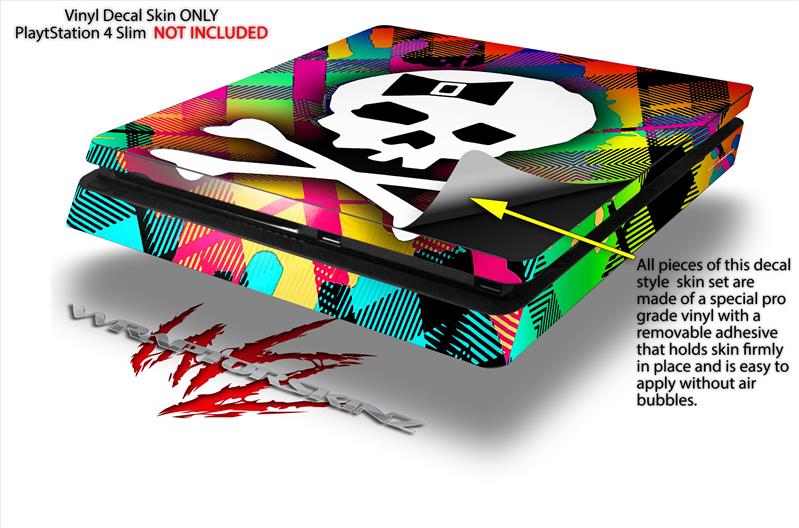 Vinyl Decal Skin Wrap compatible with Sony PlayStation 4 Slim Console Rainbow Plaid Skull (PS4 NOT INCLUDED)