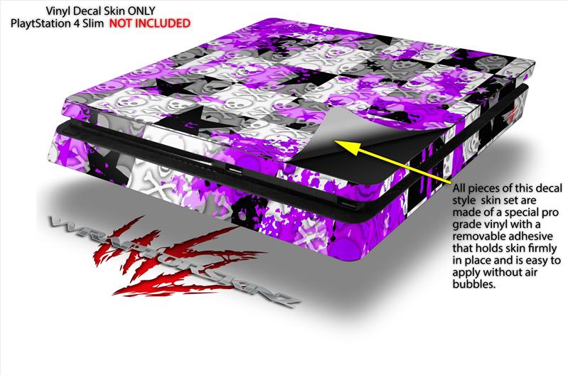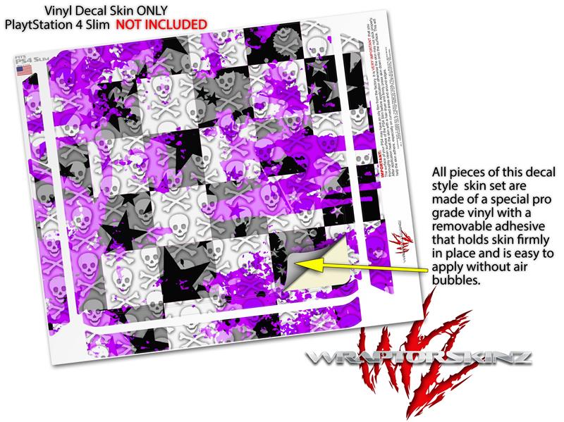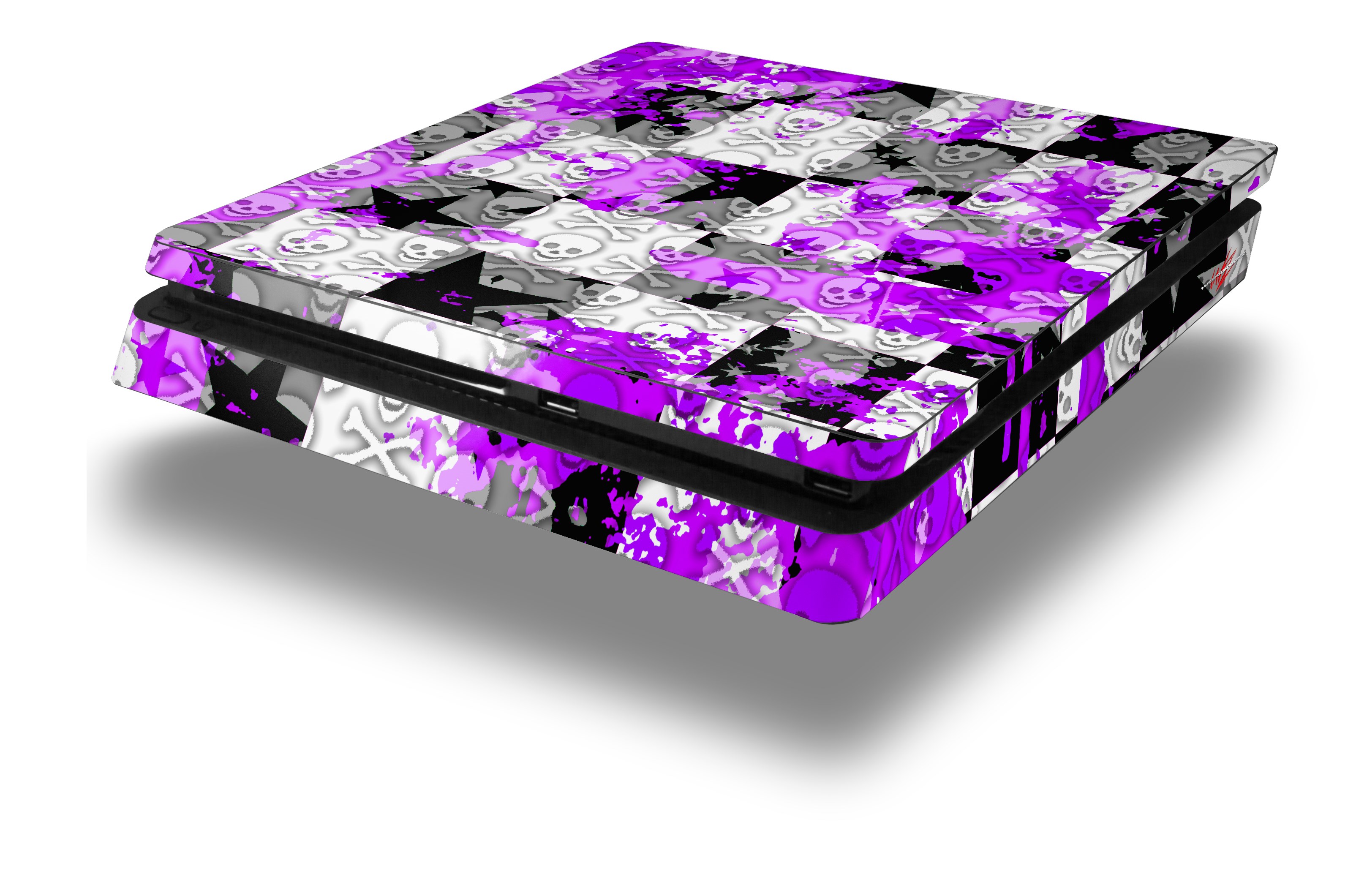 Vinyl Decal Skin Wrap compatible with Sony PlayStation 4 Slim Console Purple Checker Skull Splatter (PS4 NOT INCLUDED)