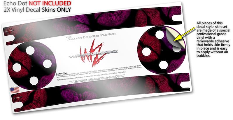 Skin Wrap Decal Set 2 Pack for Amazon Echo Dot 2 - Red Pink And Black Lips (2nd Generation ONLY - Echo NOT INCLUDED)